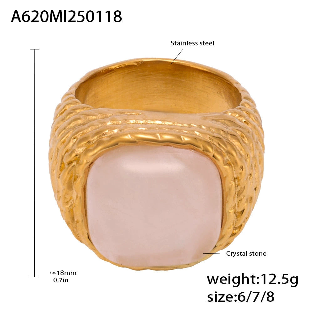 Wholesale Women's Geometric Stainless Steel Ferris Wheel Maillard Tiger Eye Stone Ring With 18K Real Gold Electroplating Medieval Precision Jewelry