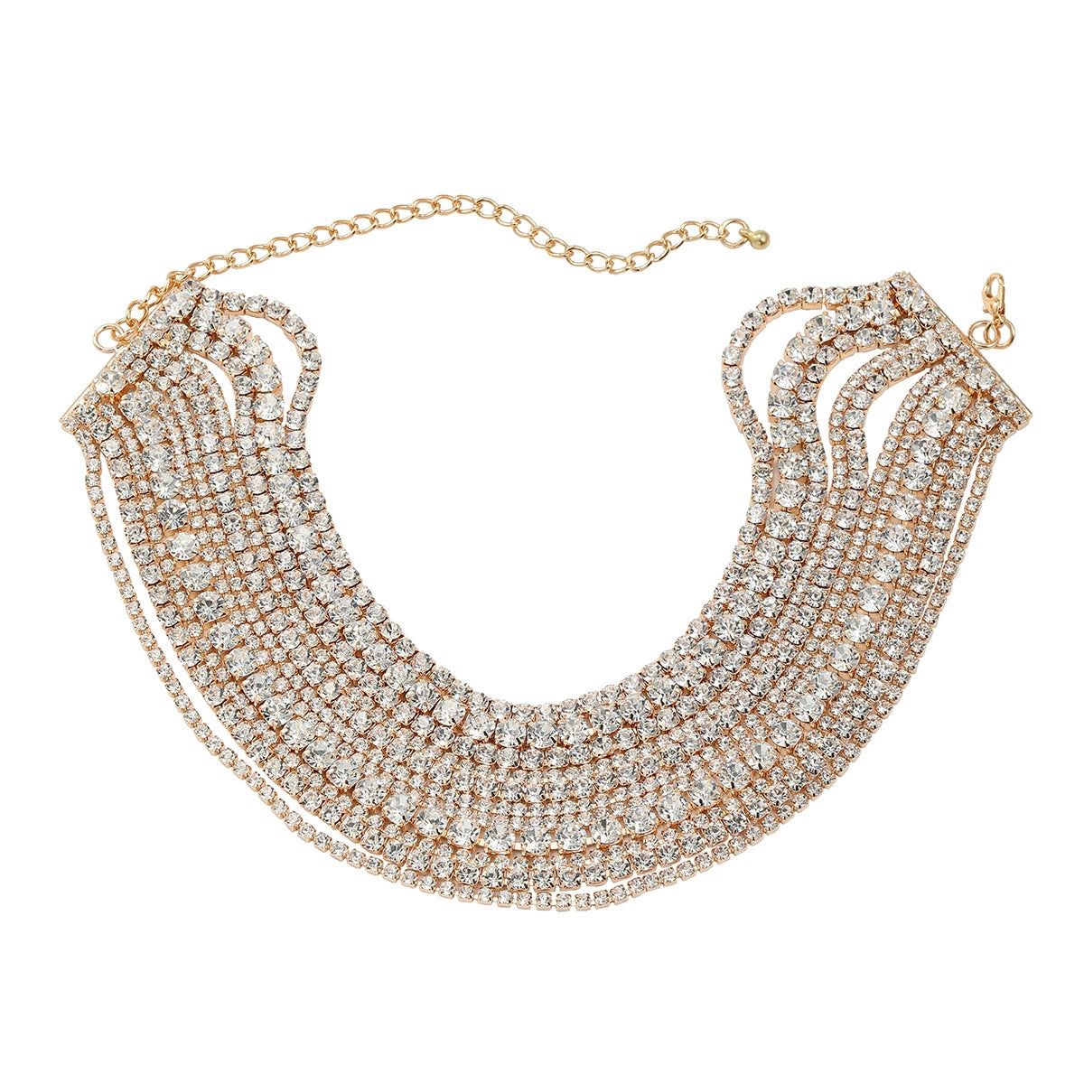 Wholesale Women's Multi Layer Alloy Glass Diamond Geometric Snake Bone Chain Necklace