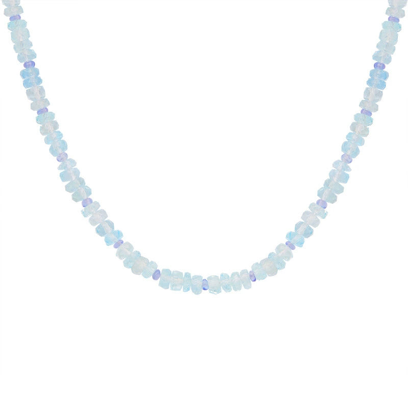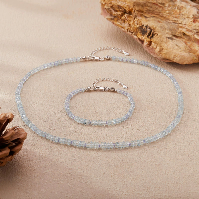 Wholesale Women's Natural Aquamarine Beaded Clavicle Necklace 925 Sterling Silver Light Luxury Geometric Set With Gems Cross Chain Jewelry