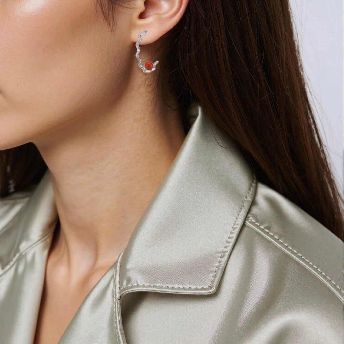 Wholesale Women's Natural Red Agate Pearl Earrings S925 Sterling Silver Wave Shape Set With Gemstones Light Luxury Design