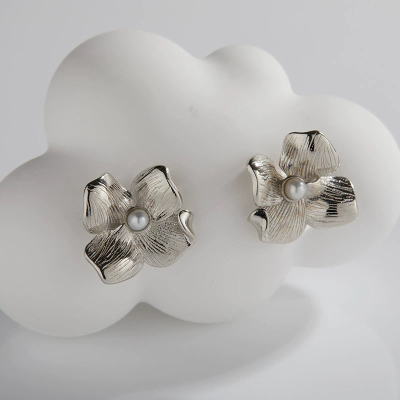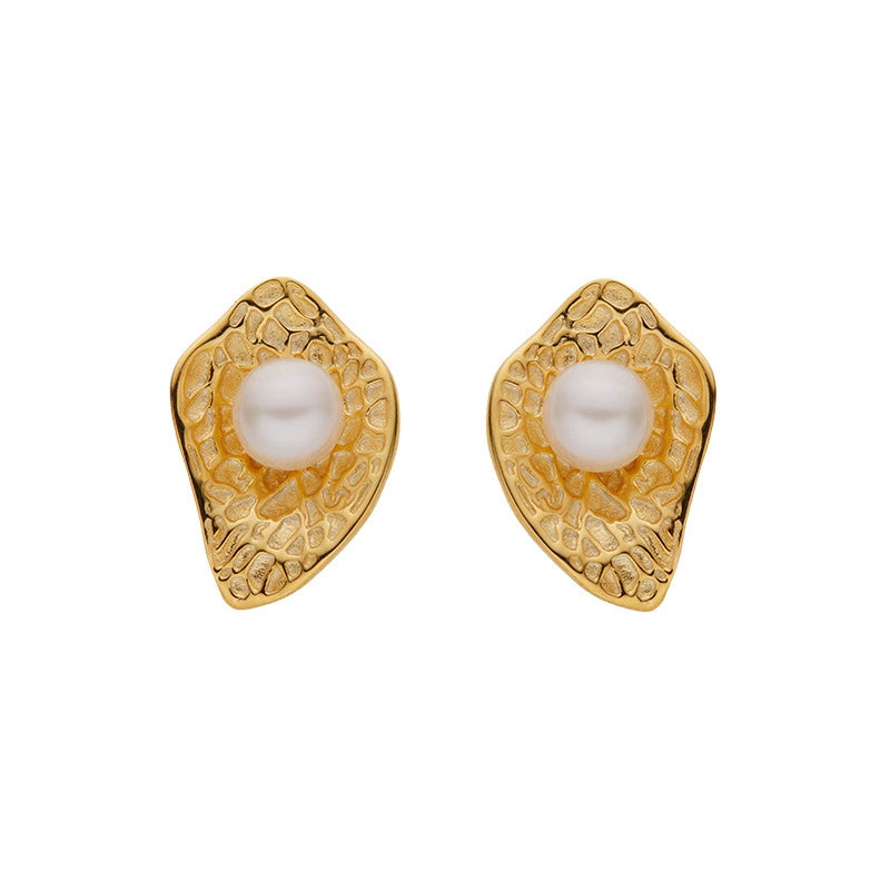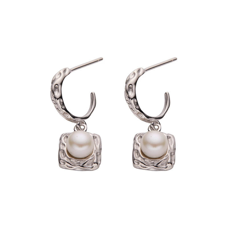 Wholesale Women's Retro Simple Geometric S925 Sterling Silver Inlaid Natural Pearl Earrings