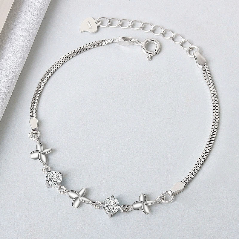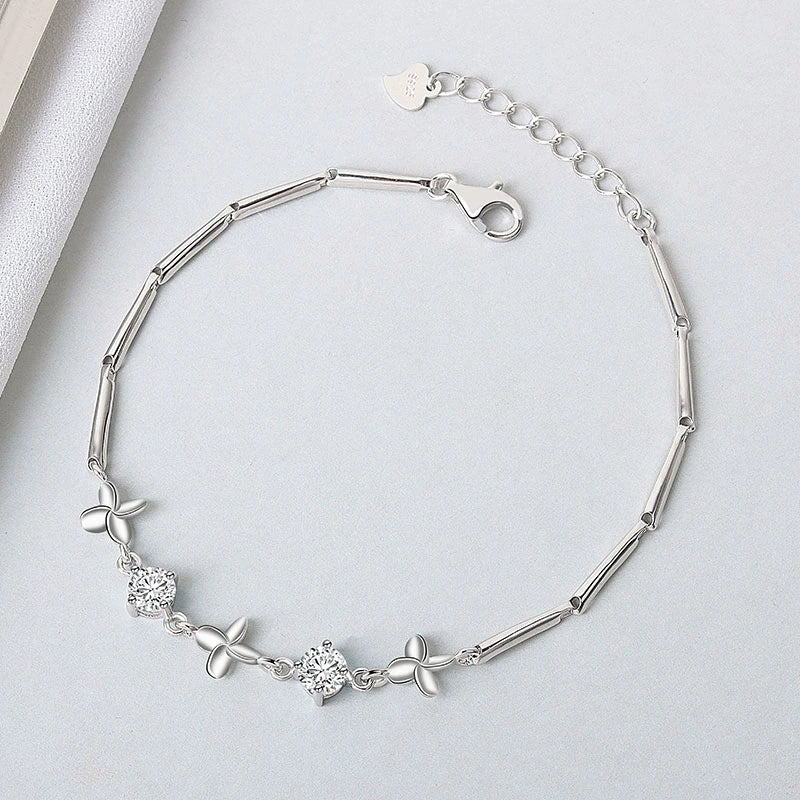 Wholesale Women's S925 Sterling Silver Geometric Fourleaf Clover Electroplated Bracelet
