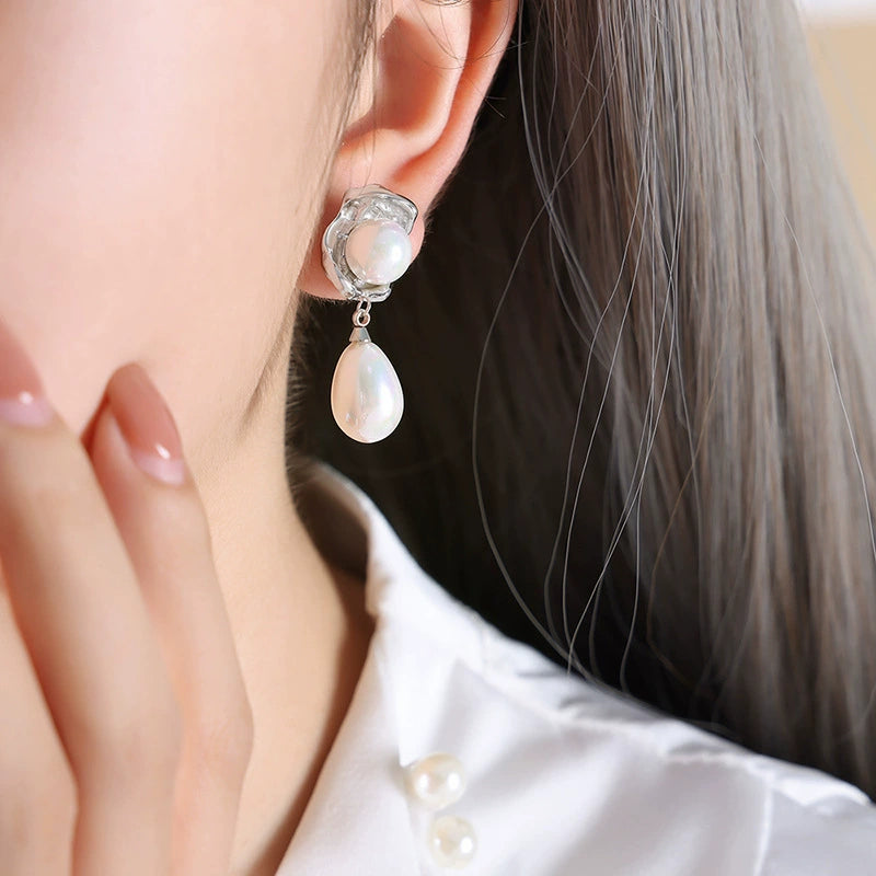 Wholesale Women's Simple Geometric Electroplated Titanium Steel Earrings With Zircon And Glass Beads And Rhinestone