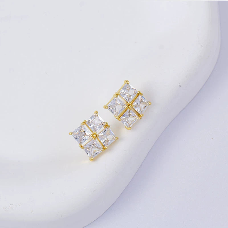 Wholesale Women's Simple Geometric Square Copper Microinlaid Electroplated Earrings