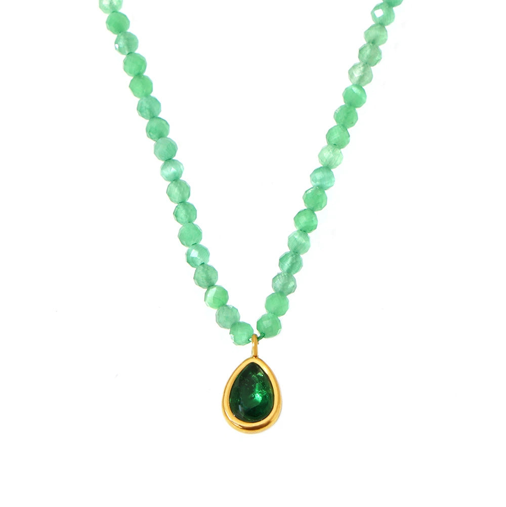 Wholesale Women's Stainless Steel Cat's Eye Stone Geometric Drop Shape Electroplated Pendant Clavicle Necklace