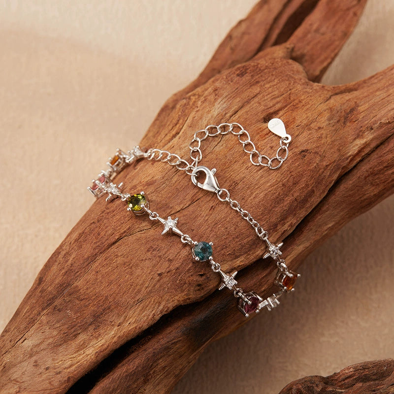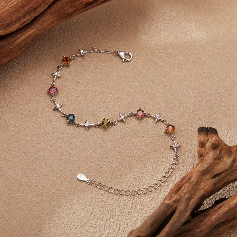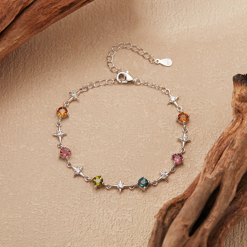 Wholesale Women's Sweet Style Natural Tourmaline S925 Sterling Silver Star Shaped Gemstone Set Bracelet