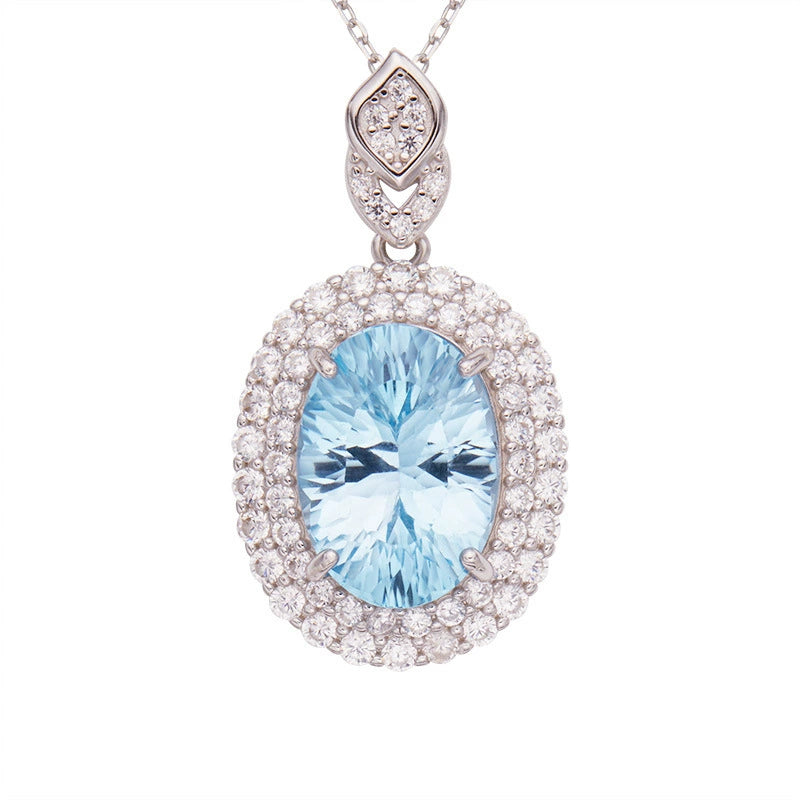 Women's Natural Colored Gemstone Pendant Necklace Geometric Crystal S925 Sterling Silver Millennium Cut