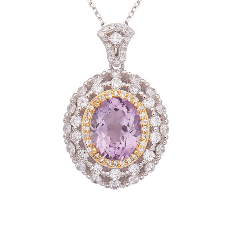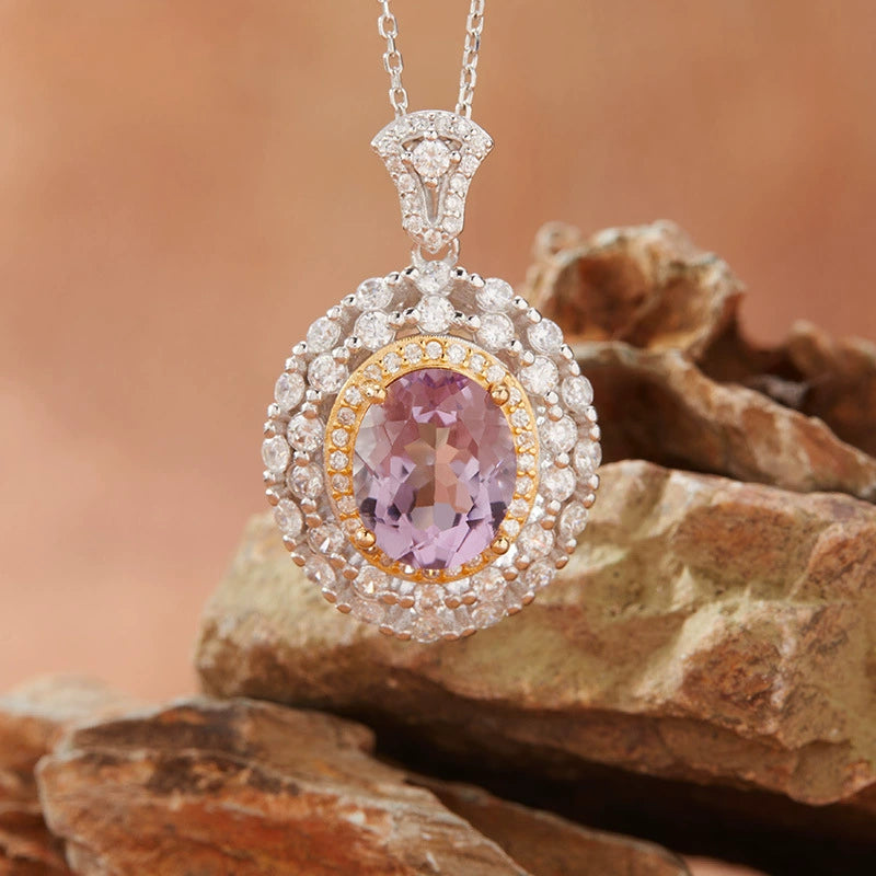 Women's Natural Topaz Amethyst Citrine Geometric Style S925 Sterling Silver Crystal Jewelry Necklace