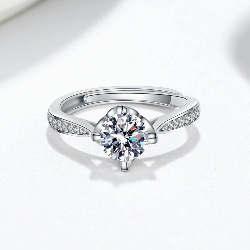 Women's Opening Moissanite Ring S925 Sterling Silver Geometric Electroplated