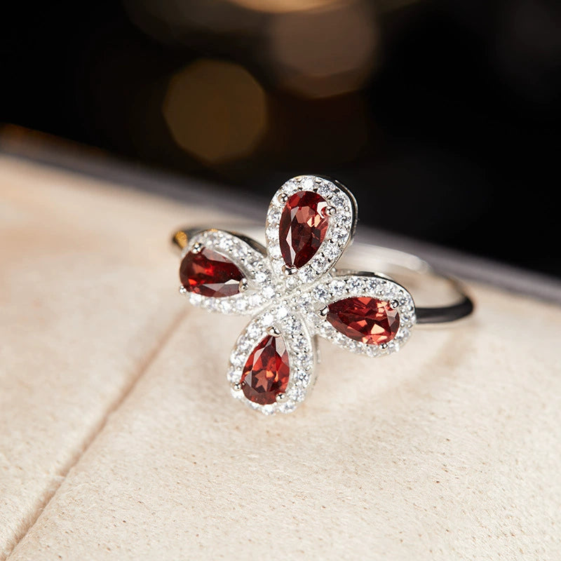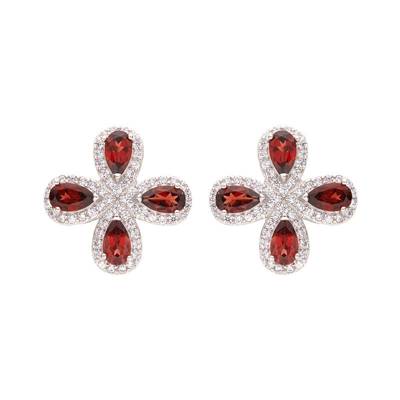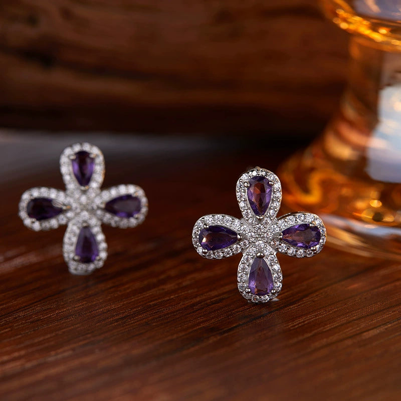 Women's Sweet Style S925 Sterling Silver Inlaid Crystal Four Leaf Flower Stud Earrings