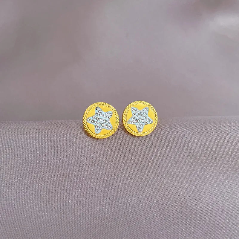 1 Pair Casual Simple Style Classic Style Pentagram Round Inlay Titanium Steel Artificial Diamond Ear Studs