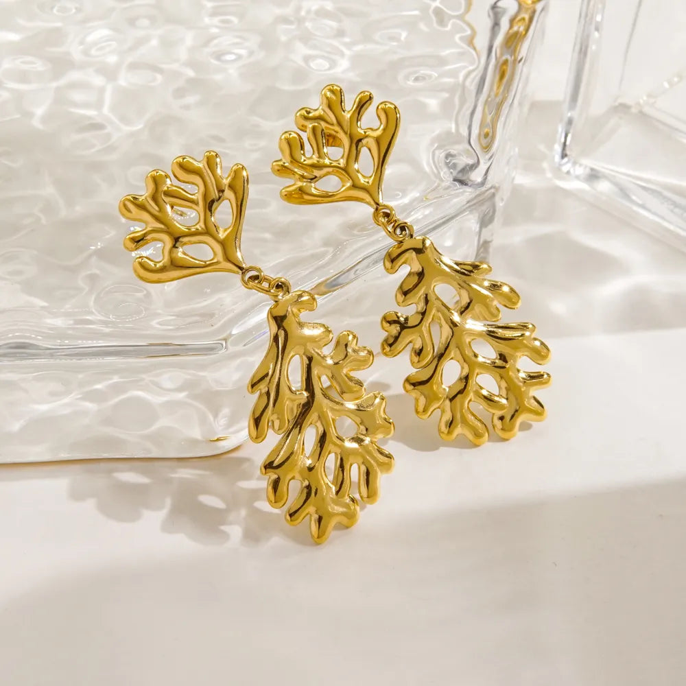 1 Pair IG Style Elegant Simple Style Trapezoid Coral 304 Stainless Steel 18K Gold Plated Drop Earrings