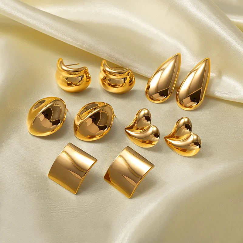 1 Pair Retro Water Droplets Solid Color Plating 304 Stainless Steel 18K Gold Plated Ear Studs