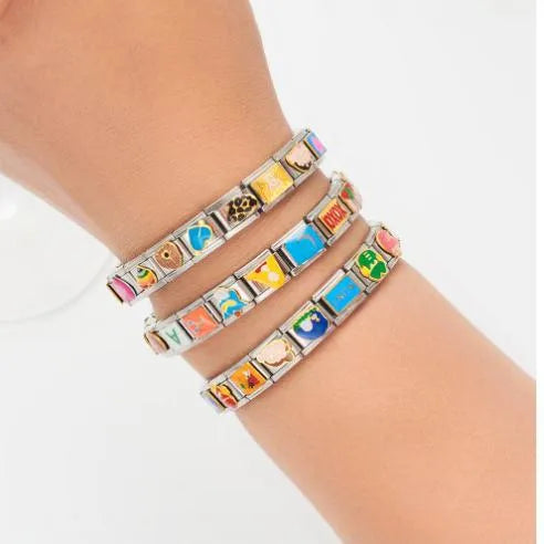 1 Piece 10*9mm 304 Stainless Steel Letter Fruit Flower Italian Charms