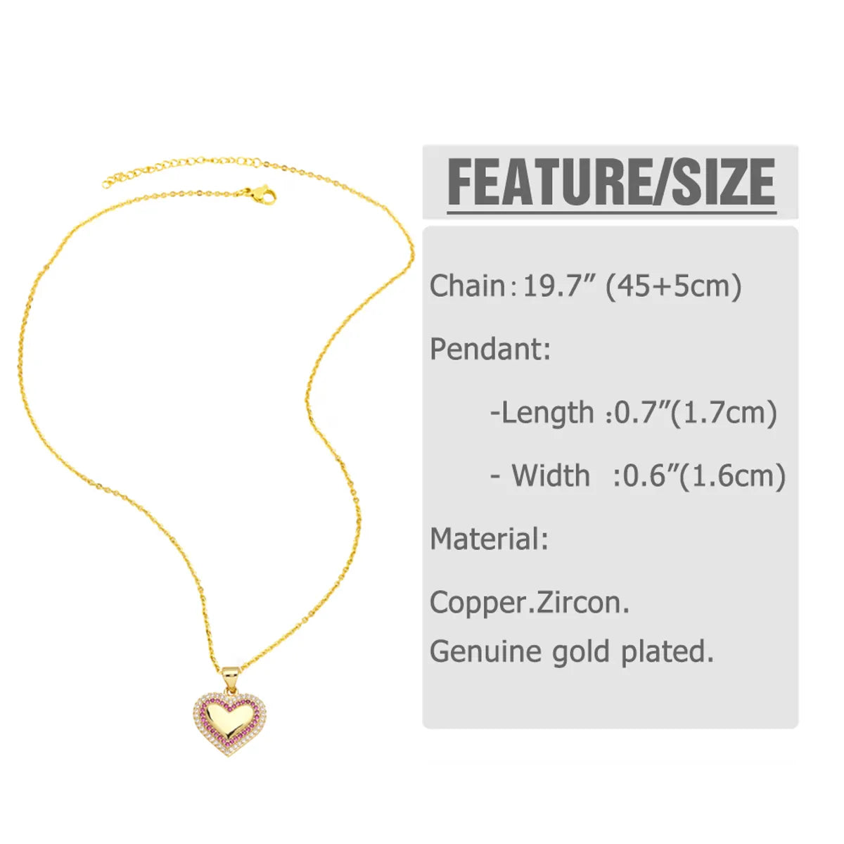 201 Stainless Steel Copper 18K Gold Plated Inlay Human Heart Shape Zircon Pendant Necklace