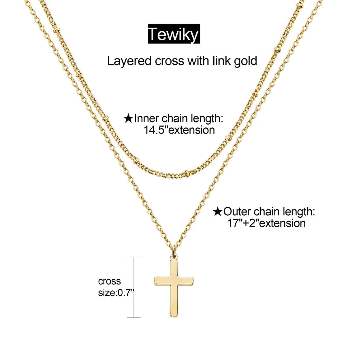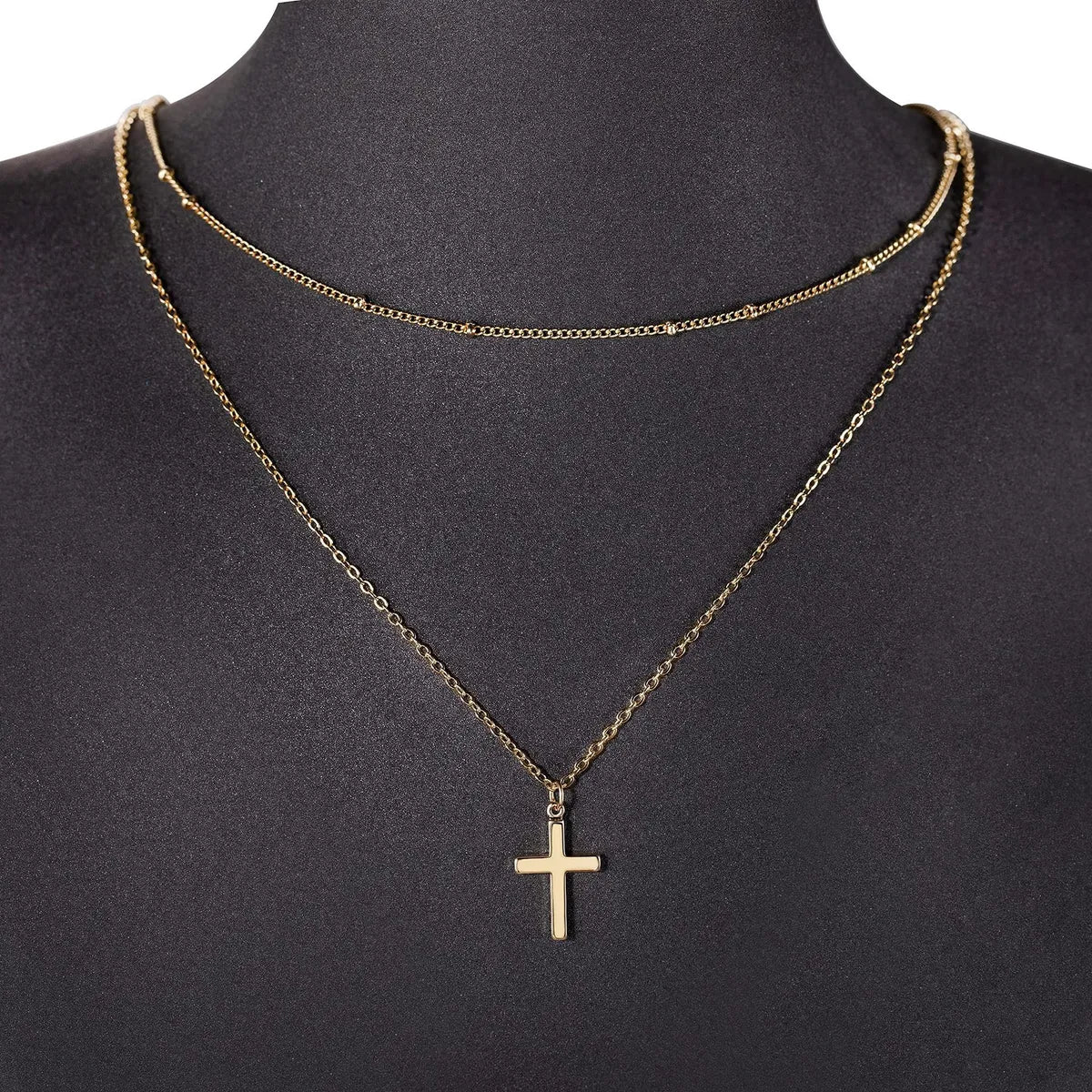 304 Stainless Steel Casual Simple Style Cross Double Layer Necklaces Pendant Necklace