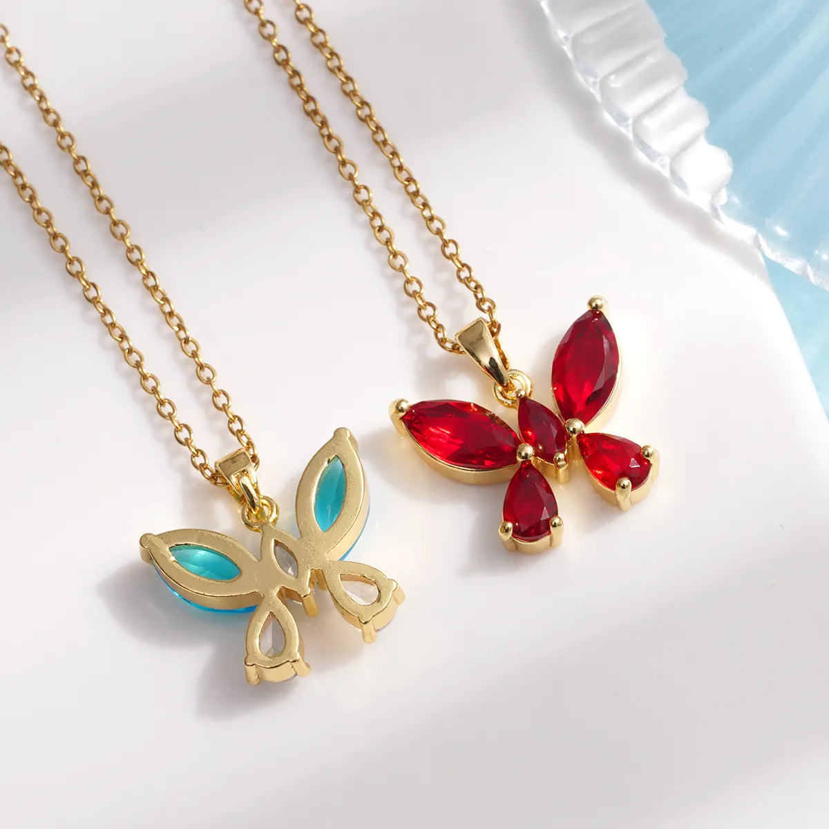 304 Stainless Steel Copper Inlay Butterfly Zircon Pendant Necklace