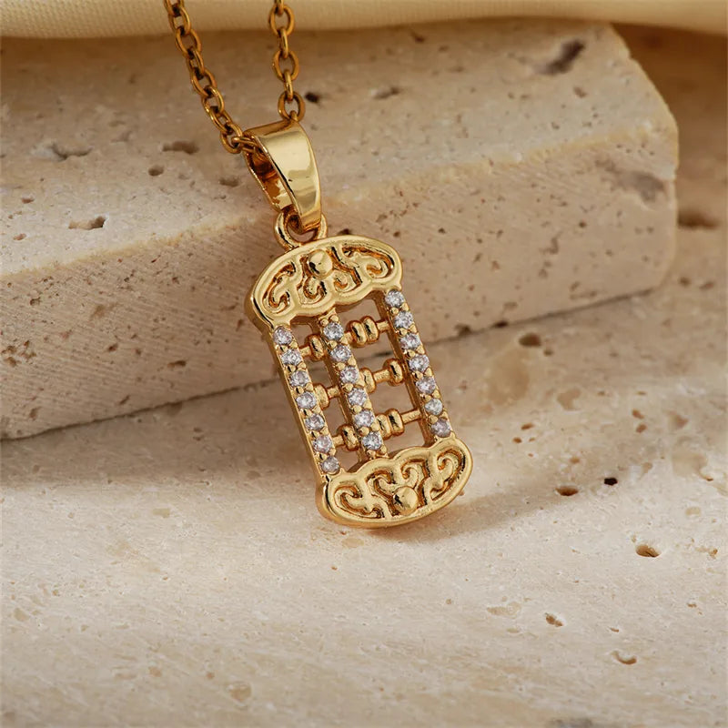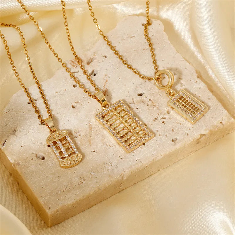 304 Stainless Steel Copper K Gold Plated Elegant Vintage Style Artistic Plating Inlay Abacus Zircon Pendant Necklace