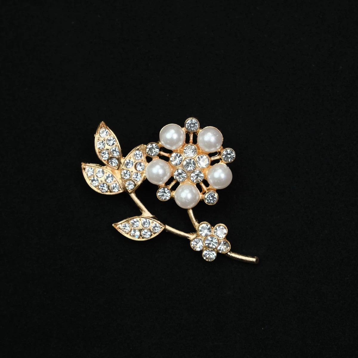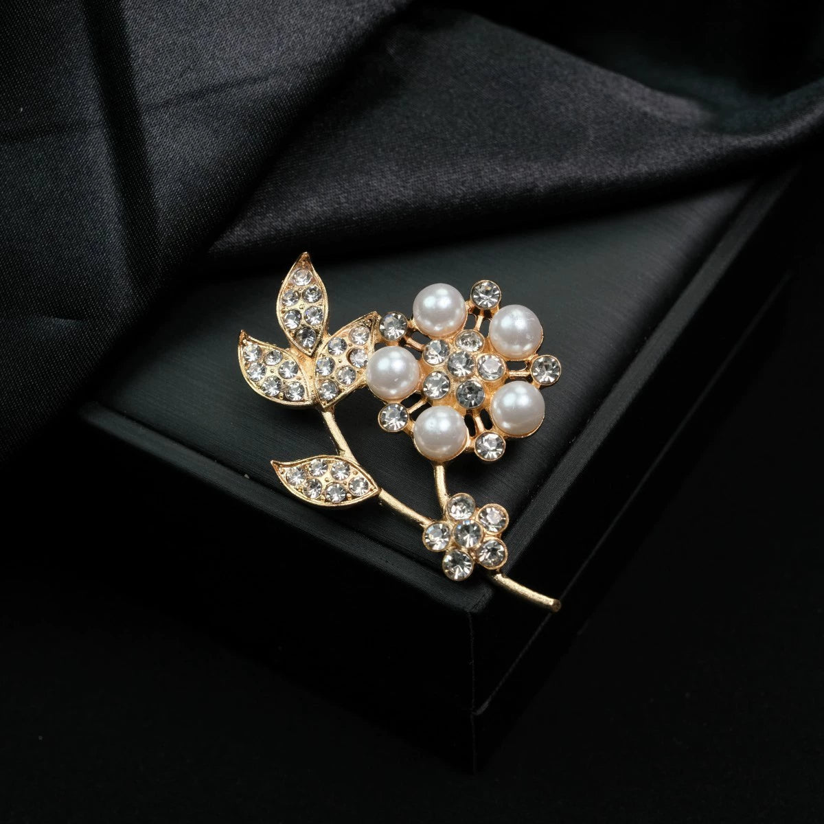 Alloy Floral Leaf Bow Rhinestone Brooch Electroplating Antiexposure Luxury Design Unisex Suit Accessory