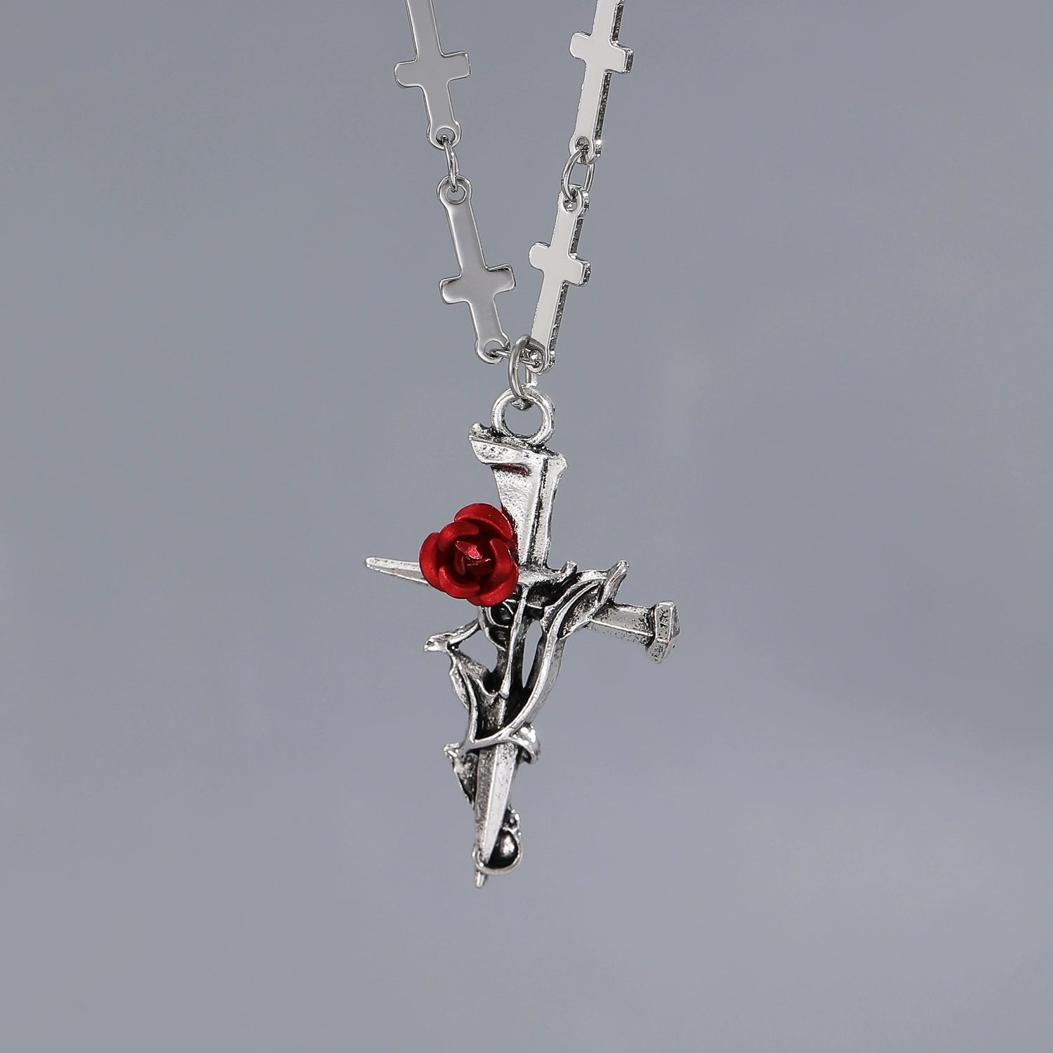 Alloy Geometric Cross Rose Necklace Electroplating Gothic Punk Rock Vintage Style