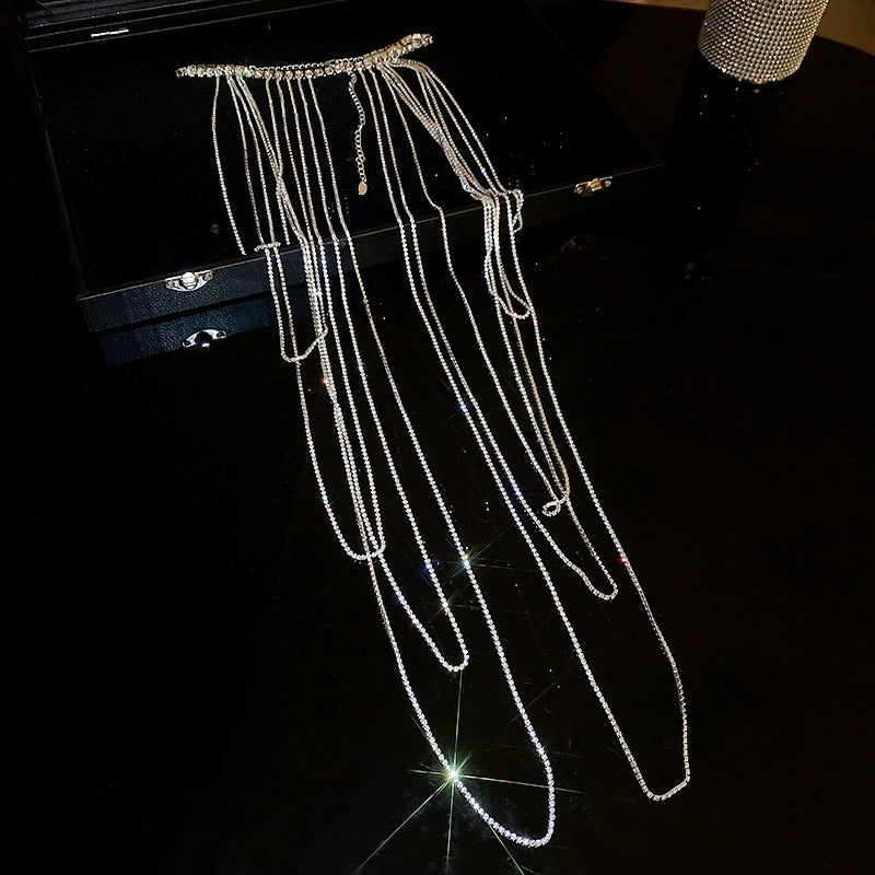 Alloy Geometric Diamondembedded Long Necklace With Exaggerated Tassel Shoulder Chain For Women