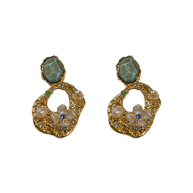Alloy Imitation Pearl Rhinestone Geometric Flower Retro Earrings For Women