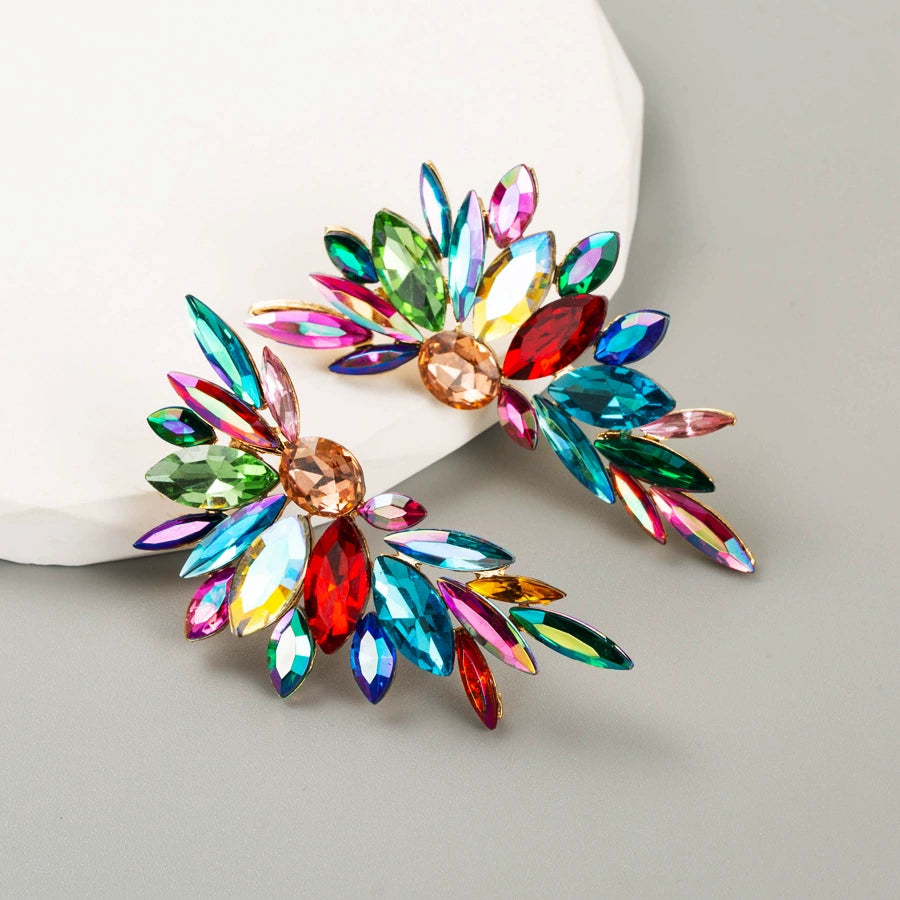 Alloy Inlaid Rhinestone Flower Diamond Earrings For Women