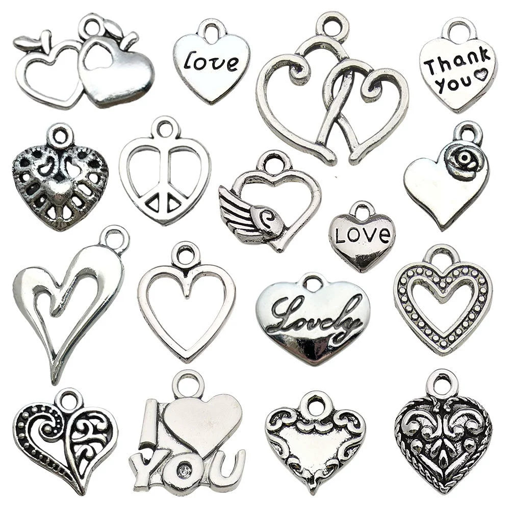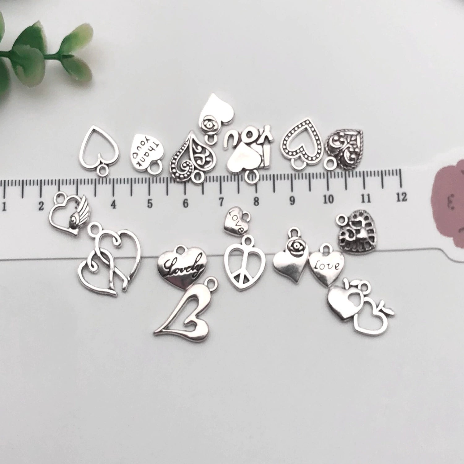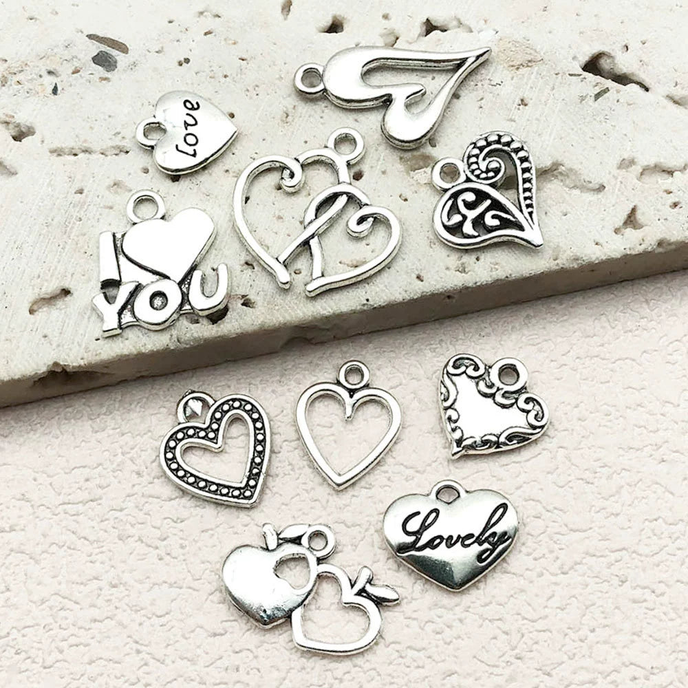 Alloy Love Heart And Love Letter Pendant Necklace Bracelet Keychain Vintage Style Electroplated