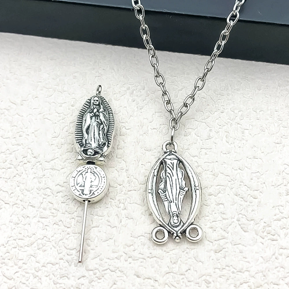 Alloy Oval Threehole Cross Pendant Jewelry Accessories Ancient Silver Retro Electroplating Style