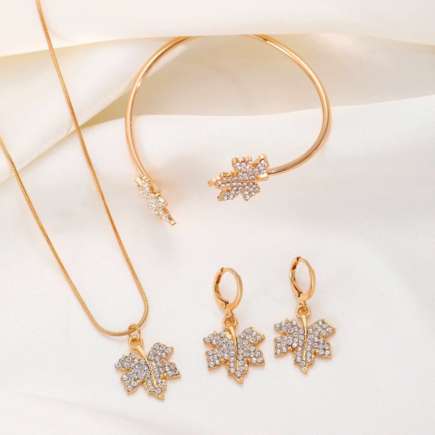 Alloy Plants And Flowers Diamond Jewelry Women's Threepiece Set Necklace Earrings Bracelet
