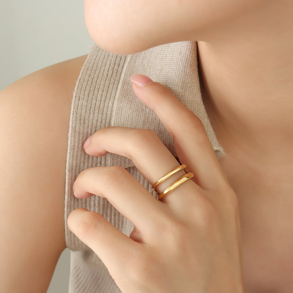 Basic Modern Style Solid Color Titanium Steel Plating 18k Gold Plated Rings