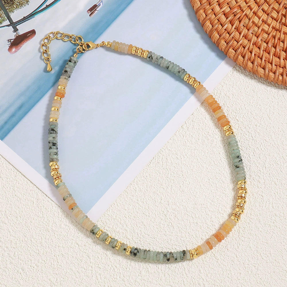 Beaded Necklace Natural Stone Copper Geometric Handmade Bohemian Style