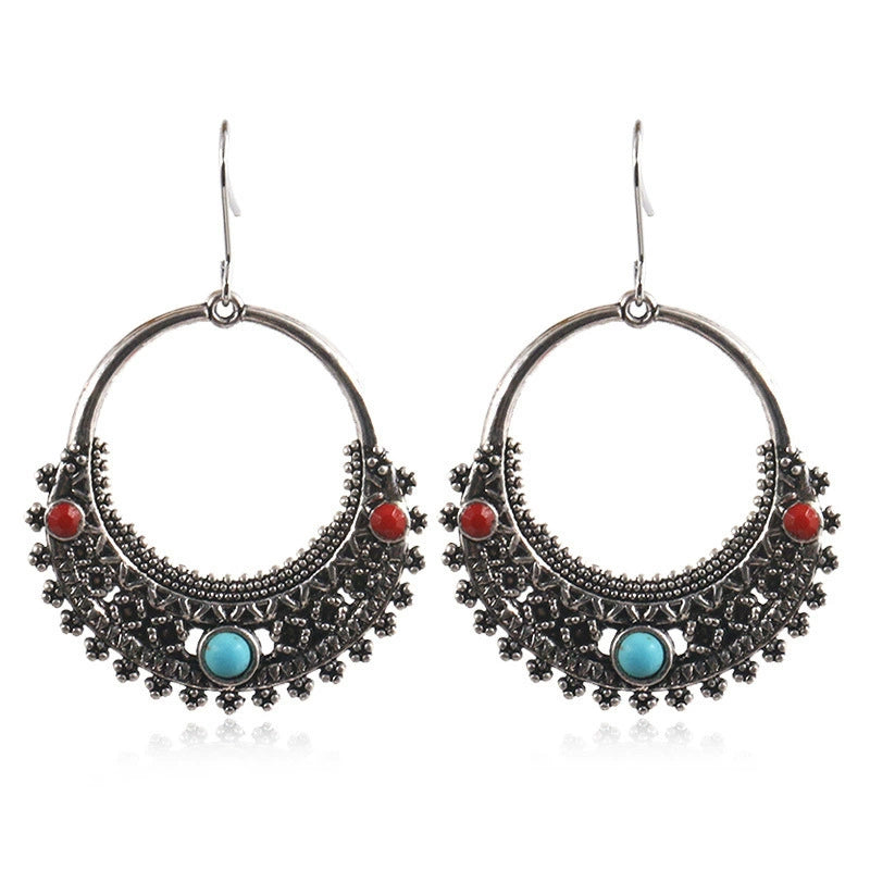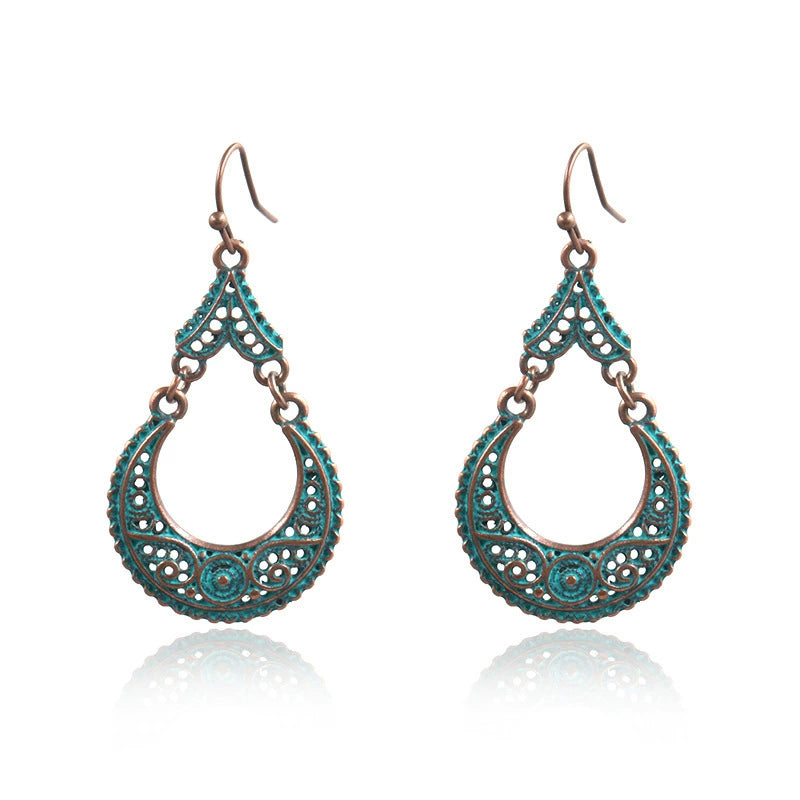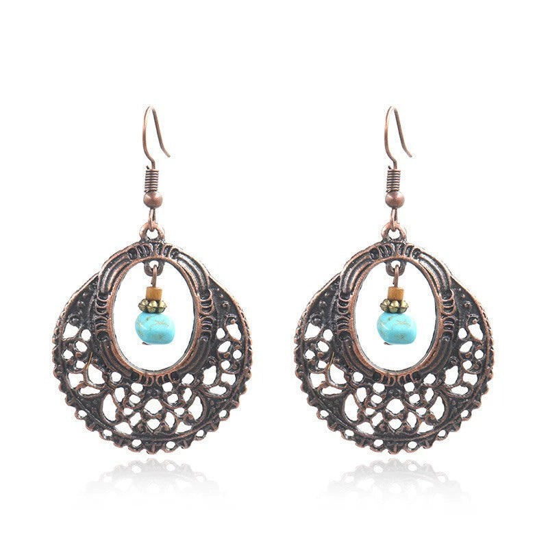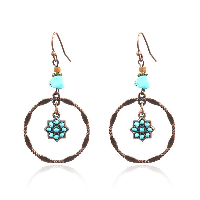 Bohemian Vintage Leaf Drop Shape Handmade Rice Bead Woven Alloy Earrings With Electroplating