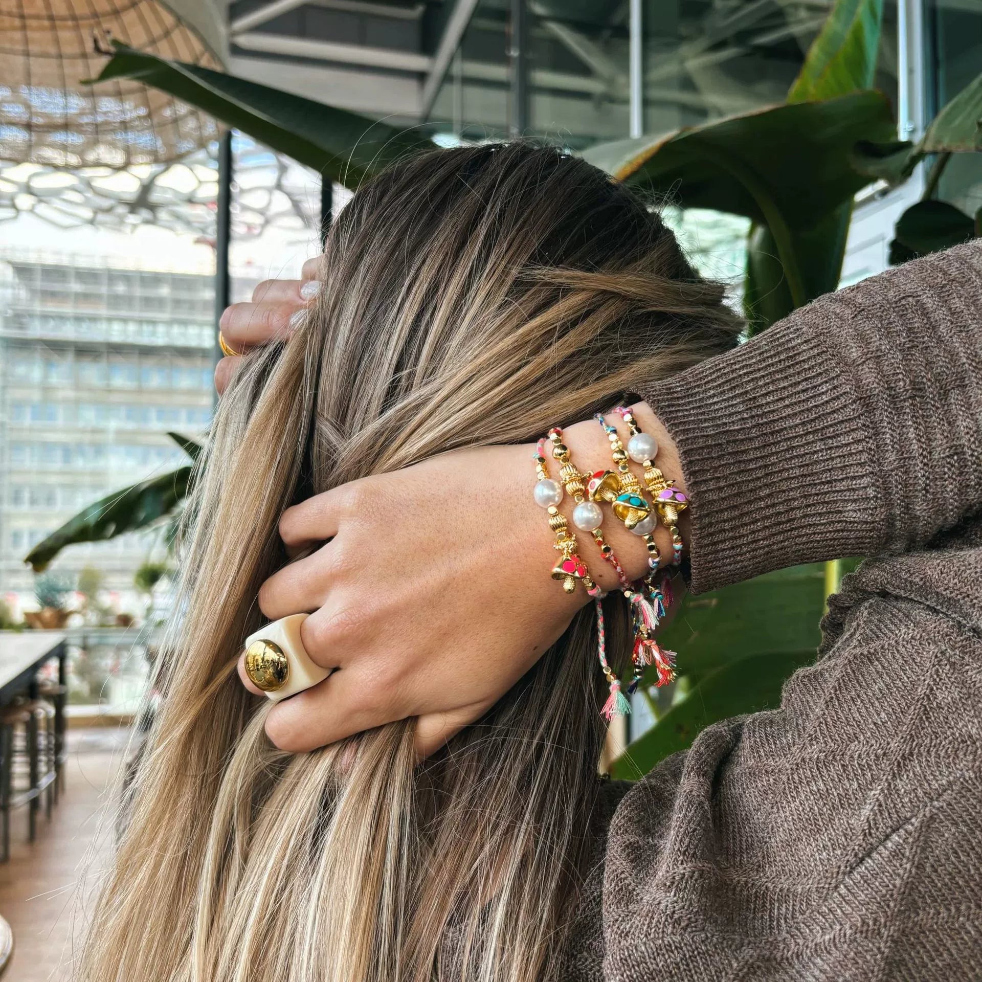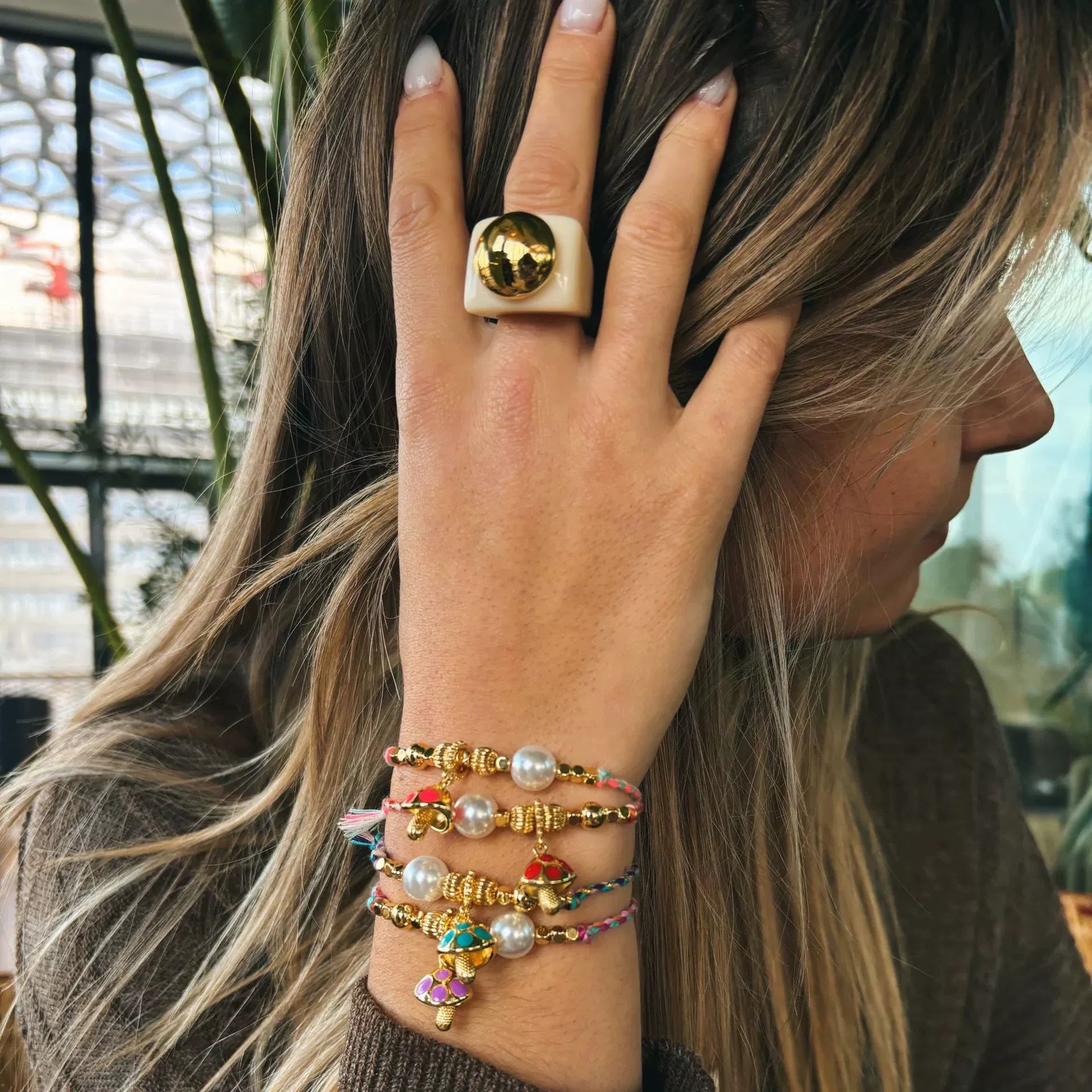 Bracelet Natural Baroque Pearl Mushroom Pendant Copper Electroplating Fashion