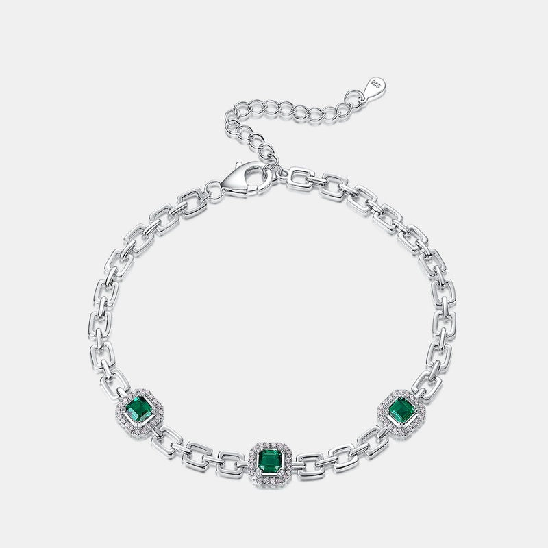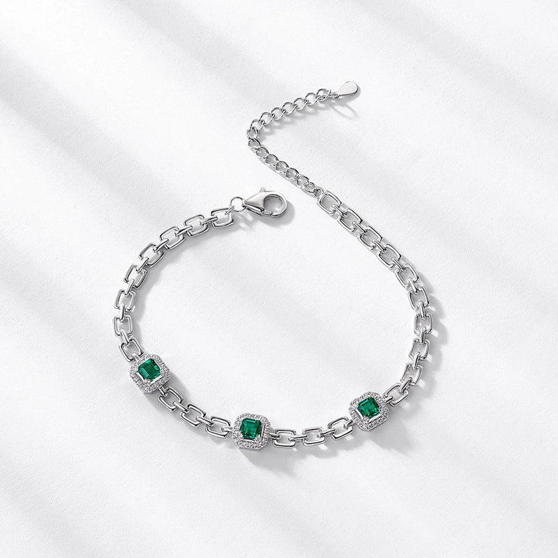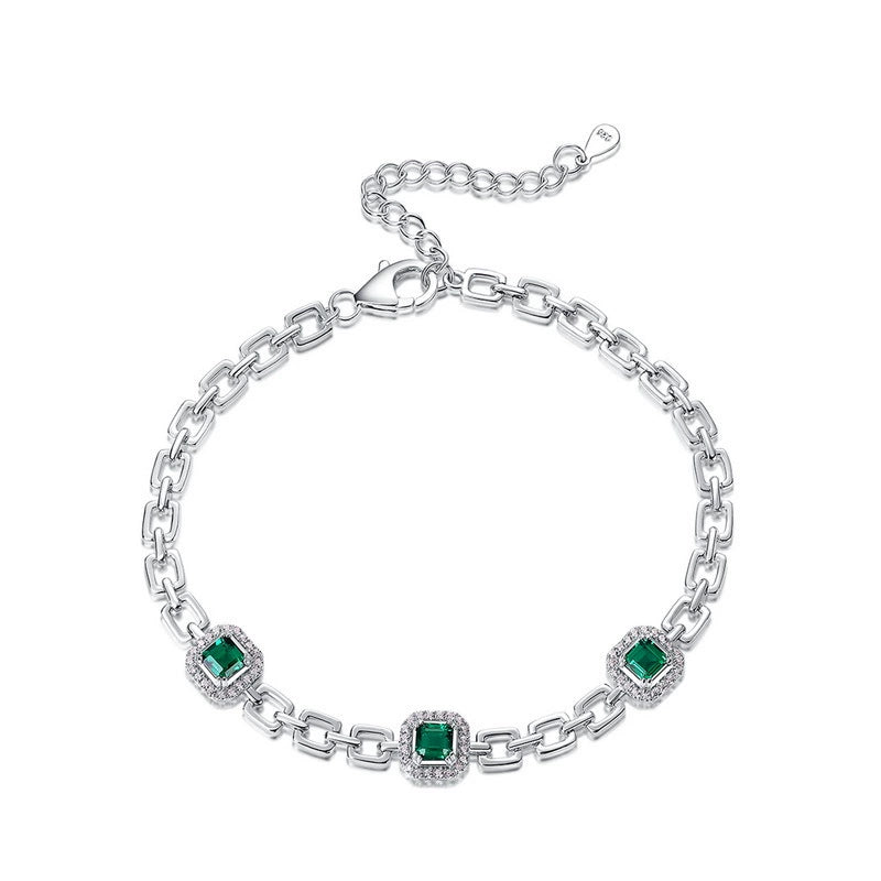 Bracelet S925 Silver Inlaid Geometric Colorful Treasure Retro Simple Style
