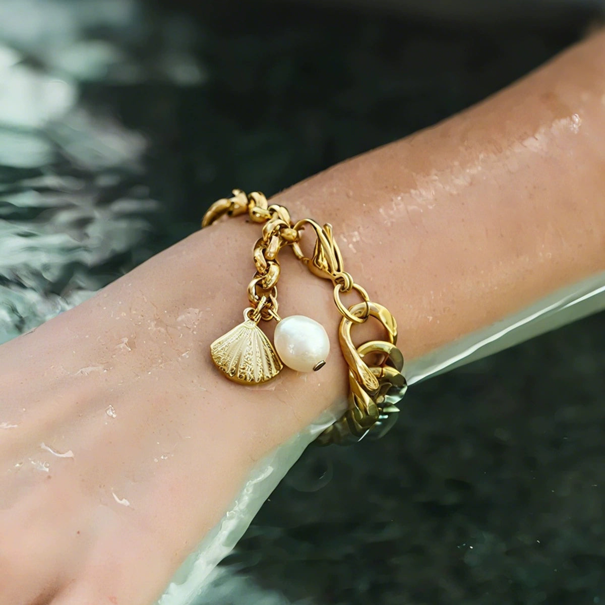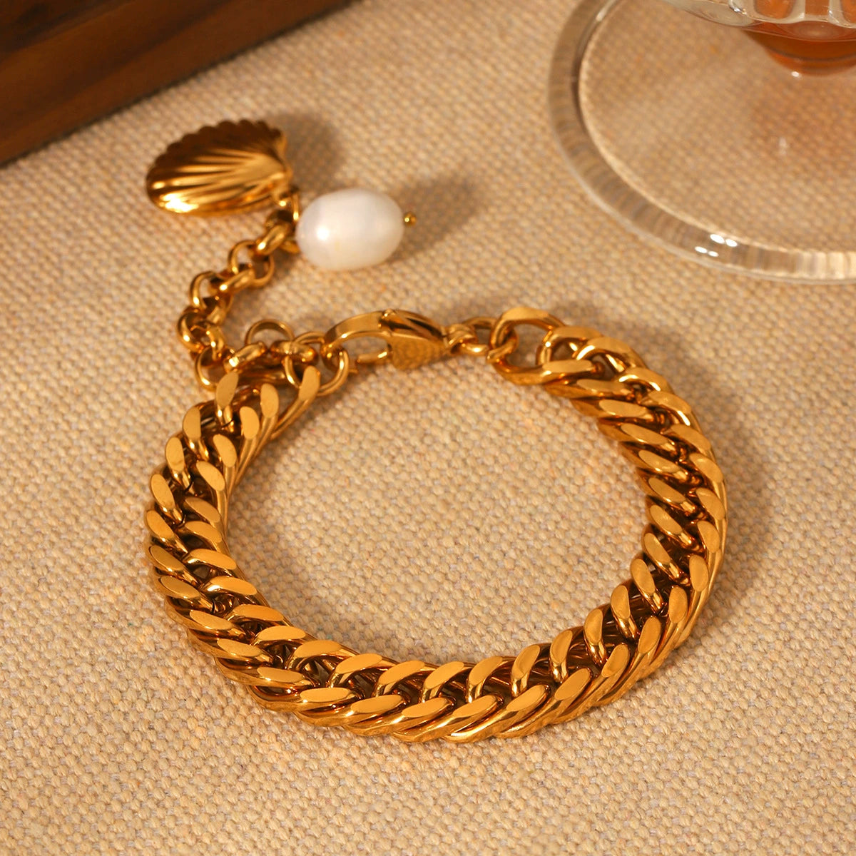 Bracelet Shell Freshwater Pearl Stainless Steel Geometric Electroplating Women's Jewelry