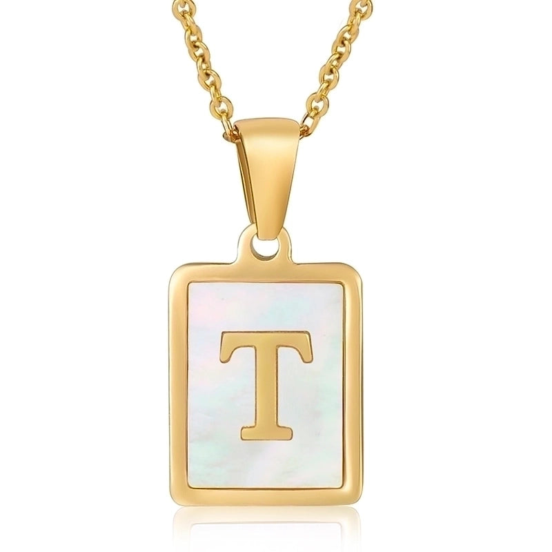 Casual Commute Letter Stainless Steel Plating Inlay Shell 18k Gold Plated Pendant Necklace