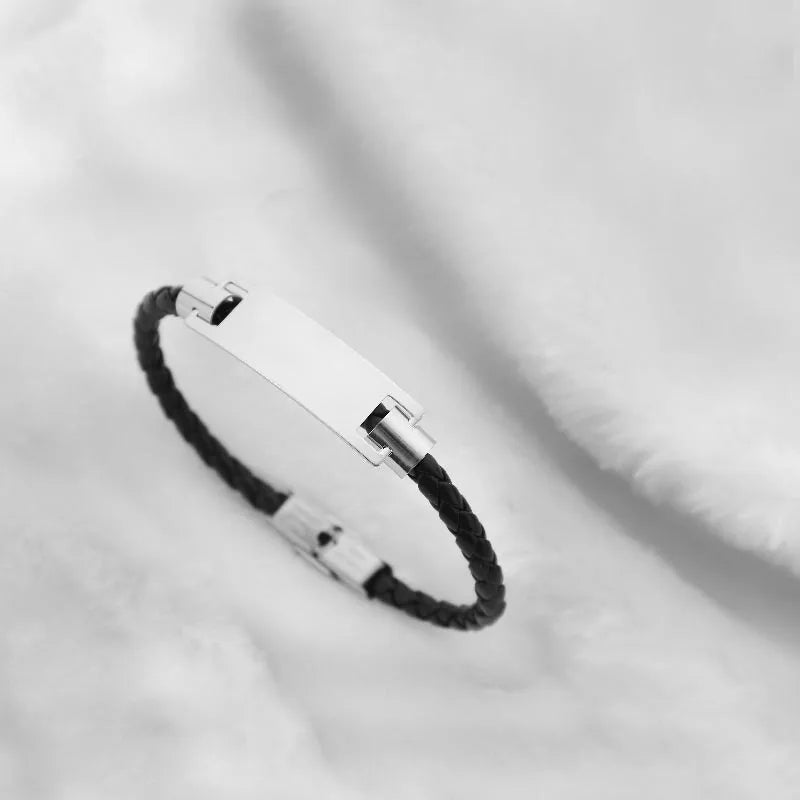 Classic Style Geometric Customization Laser Engraving Pu Leather Titanium Steel Polishing Men'S Bracelets Men Cord & Leather Bracelets