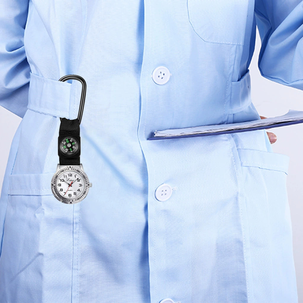 Compass Carabiner Nurse Watch Simple Fashion Leisure Watch With Round Dial And Canvas Strap And Alloy Case