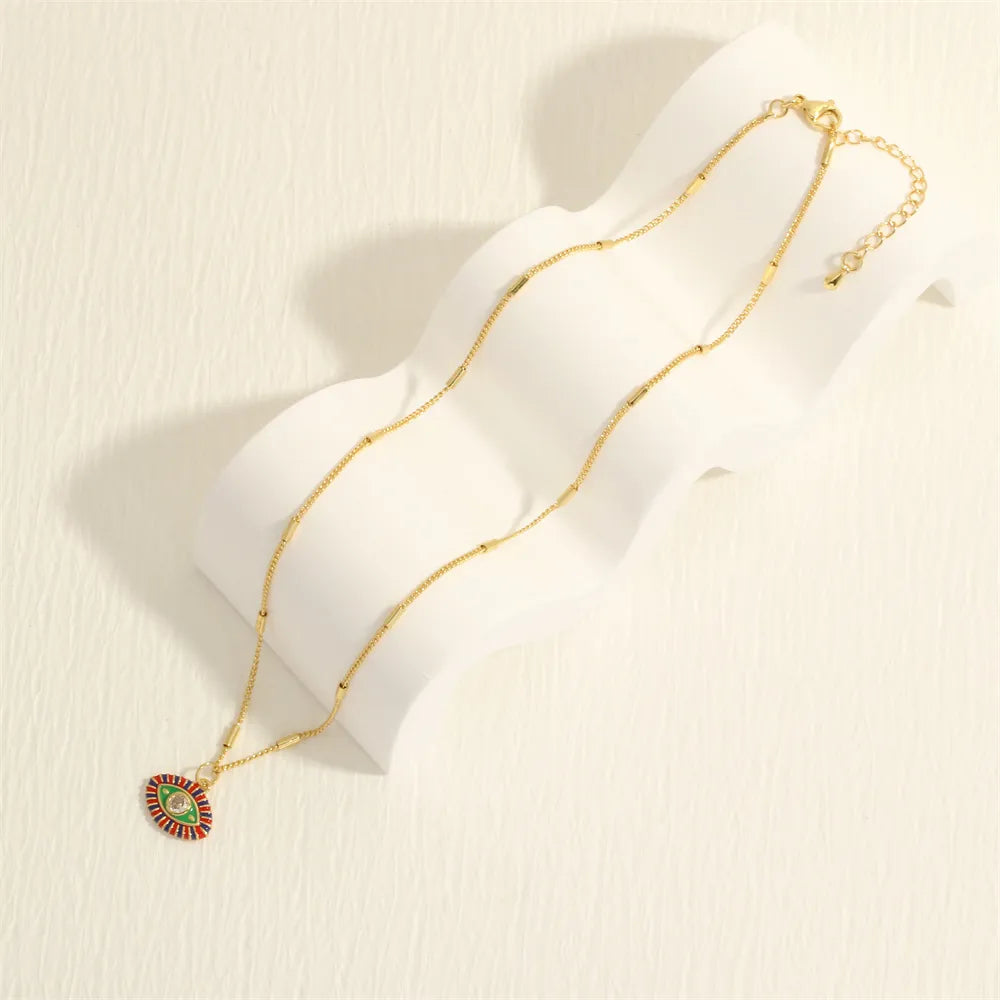 Copper 18K Gold Plated Enamel Inlay Devil'S Eye Zircon Pendant Necklace