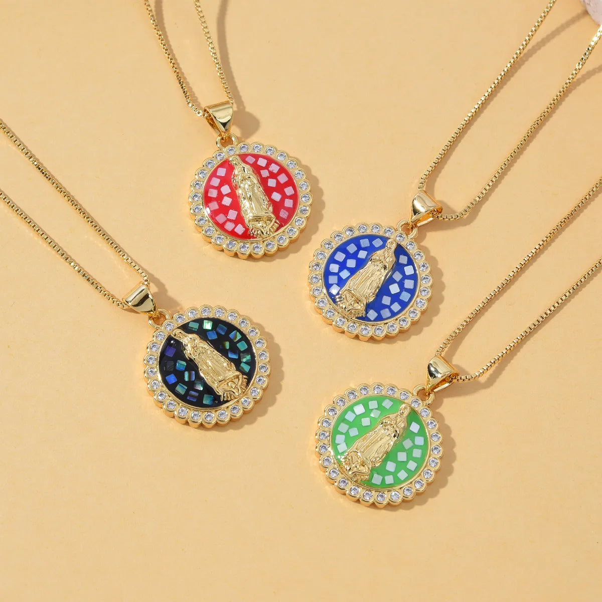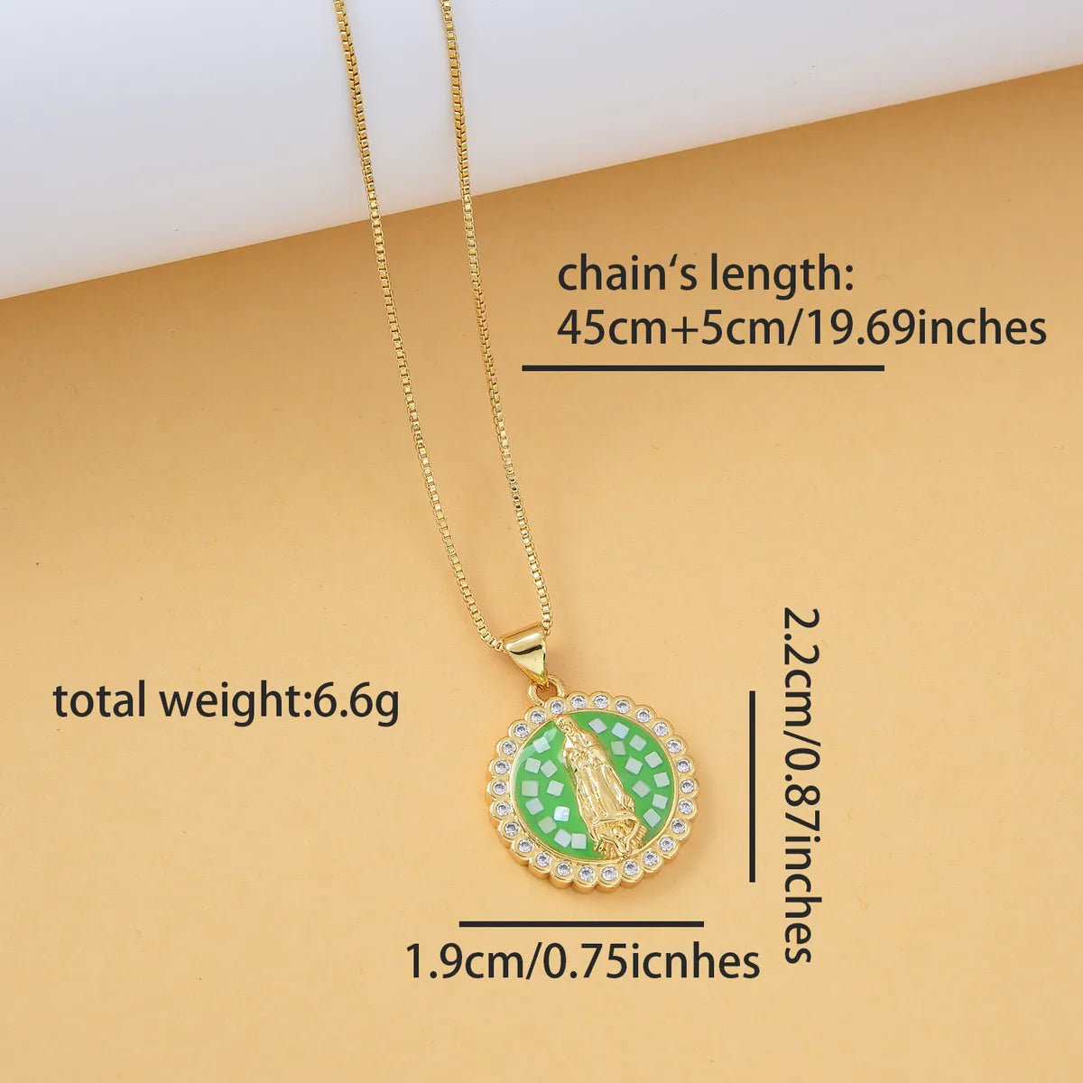 Copper 18K Gold Plated Plating Inlay Color Block Shell Zircon Pendant Necklace