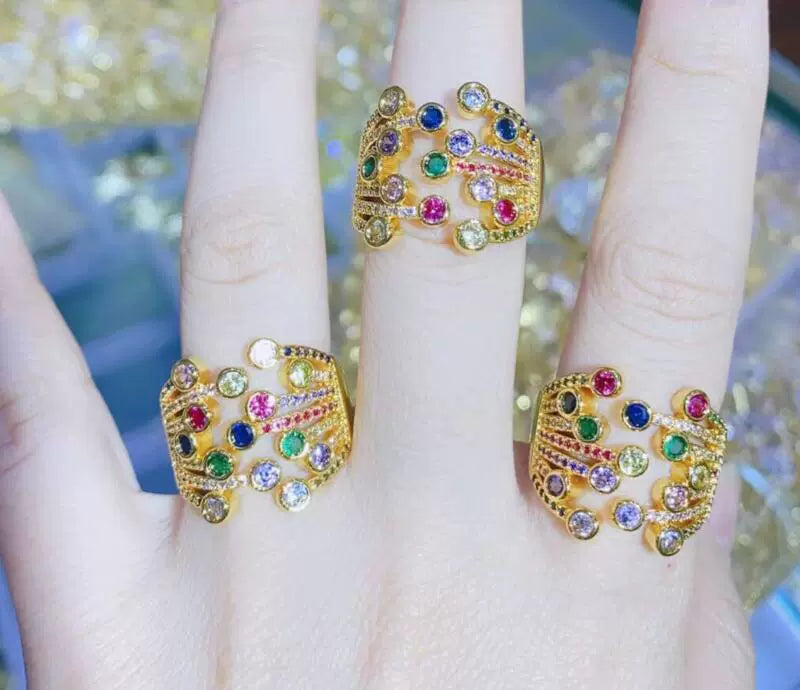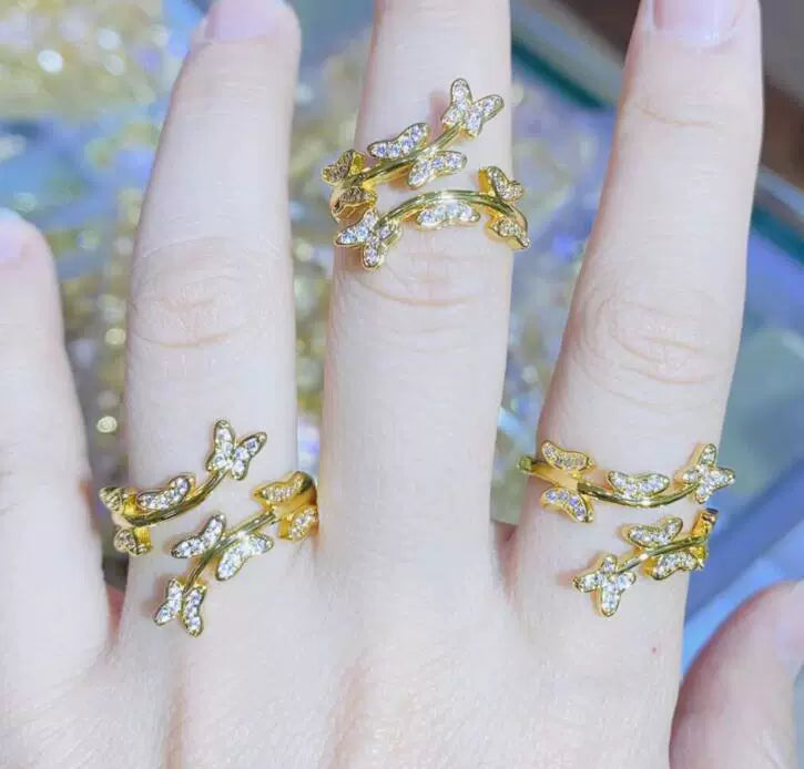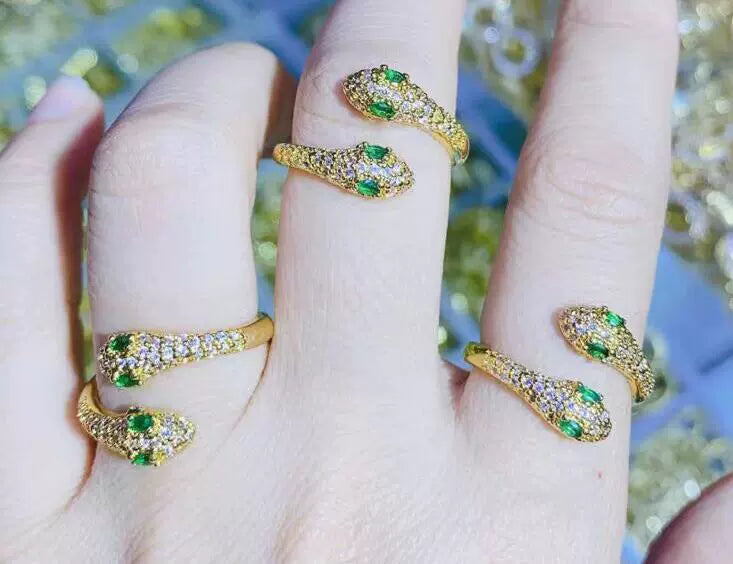 Copper Animal Ring With Micro Inlaid Zircon Snake Shaped Butterfly And Peacock Design Micro Inlaid Jewelry