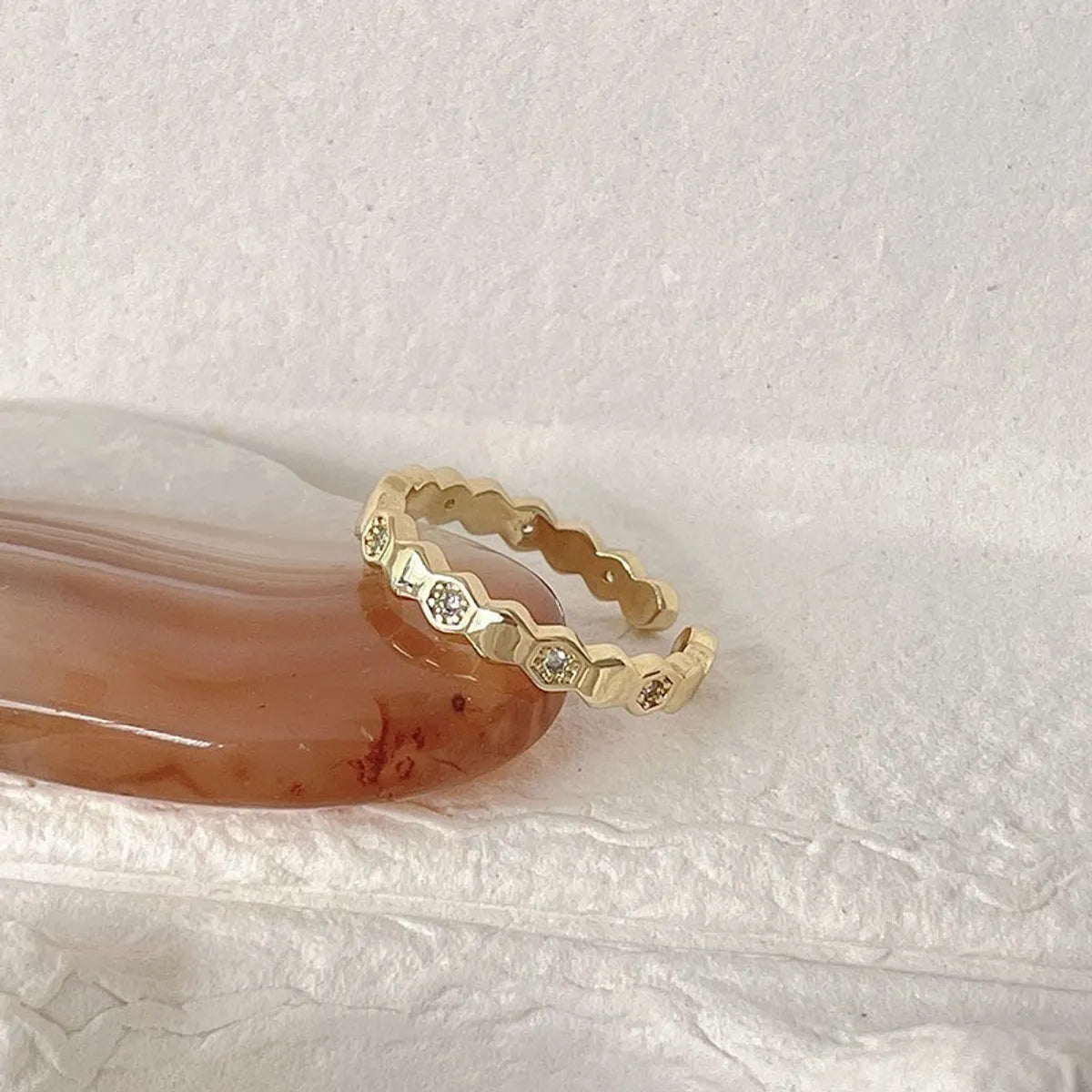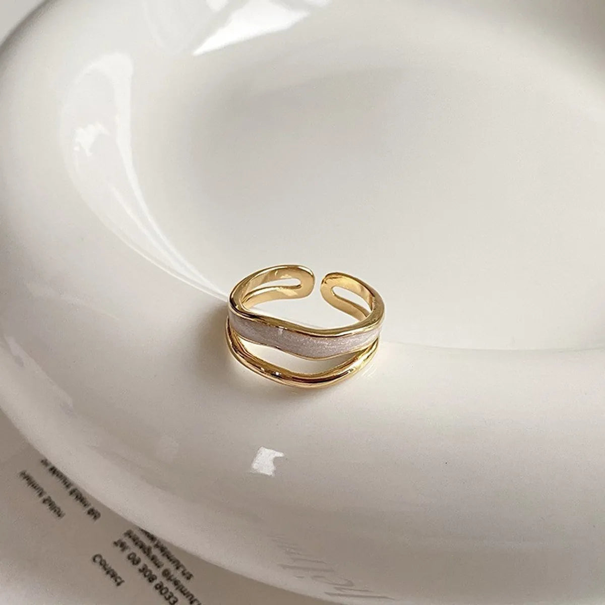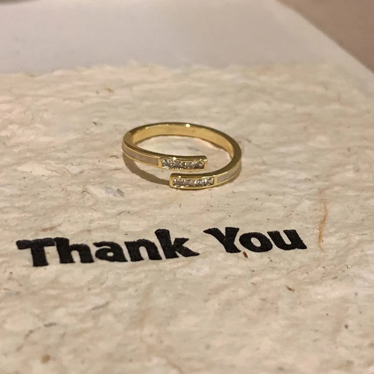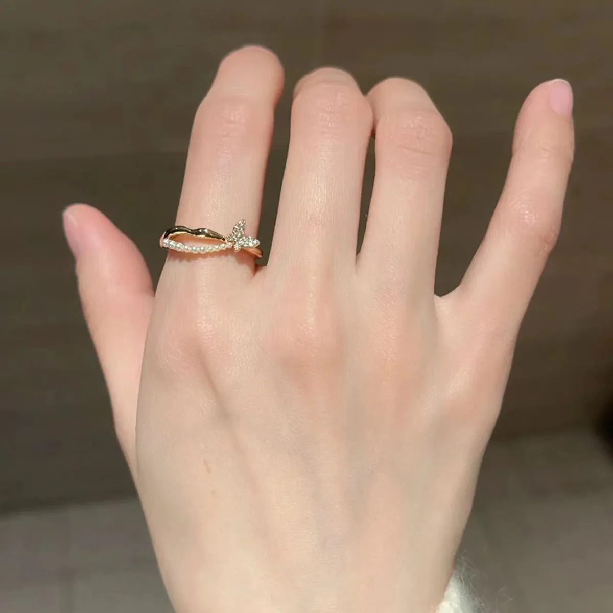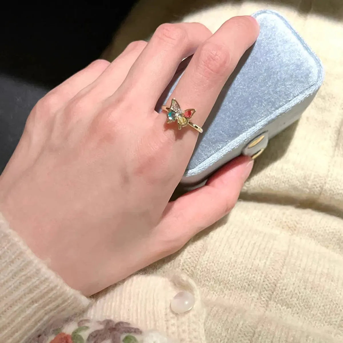 Copper Casual Sweet Enamel Inlay Geometric Butterfly Shell Zircon Open Rings