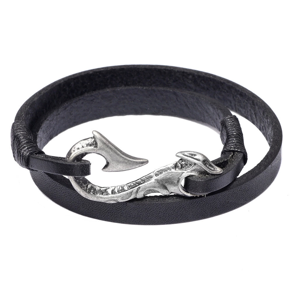 Cowhide Bracelet Handcut Woven Leather Rope Bracelet Metal Hook Alloy Electroplated Ancient Silver Leather Bracelet
