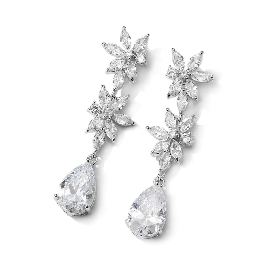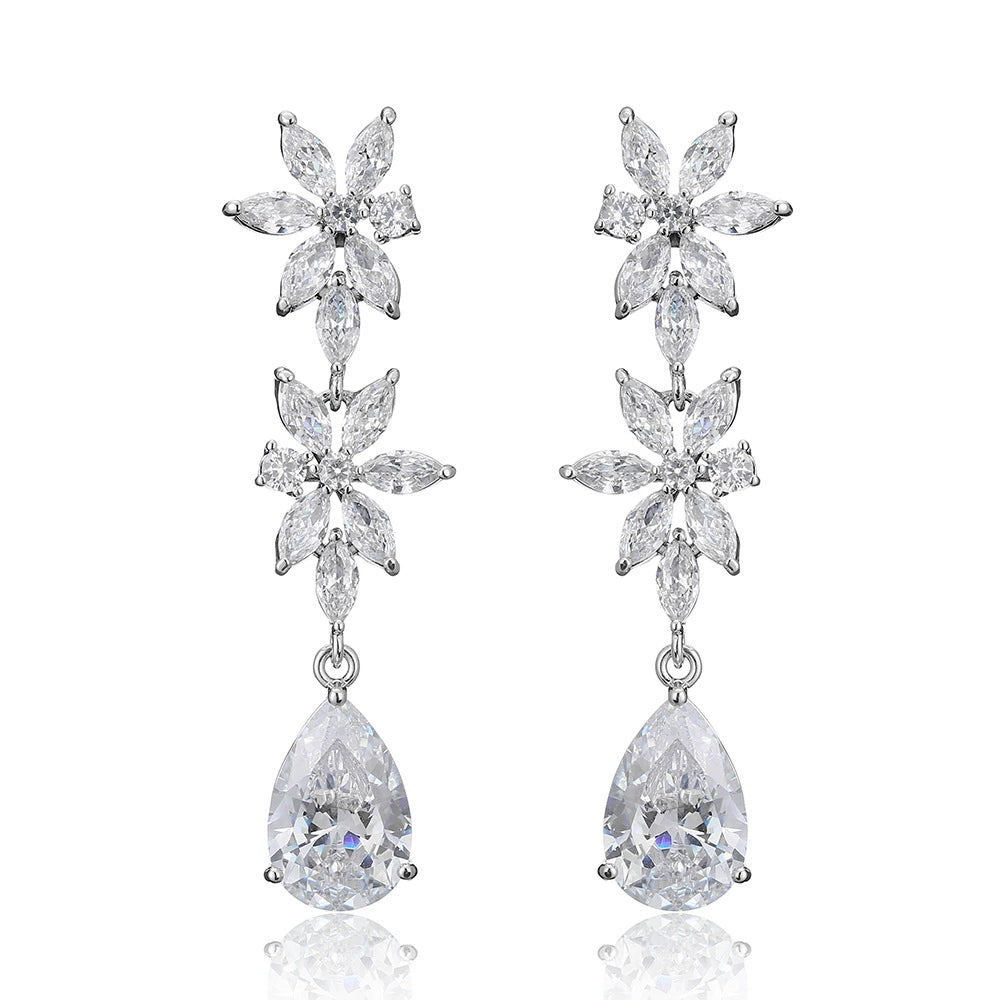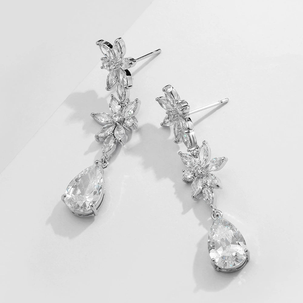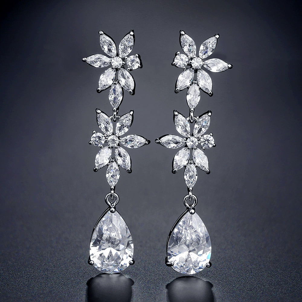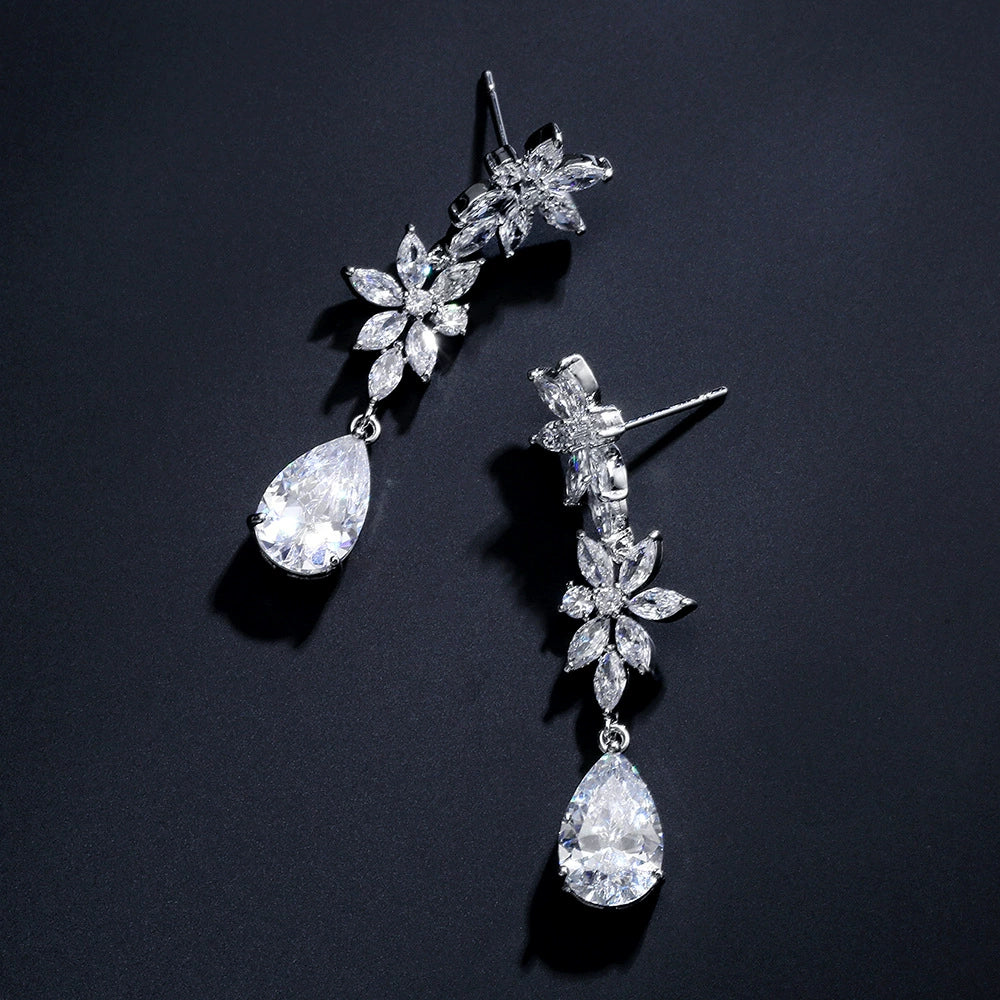 Creative Long Flower Earrings For Women Light Luxury Micro Inlaid Water Drop Zircon Copper Electroplated