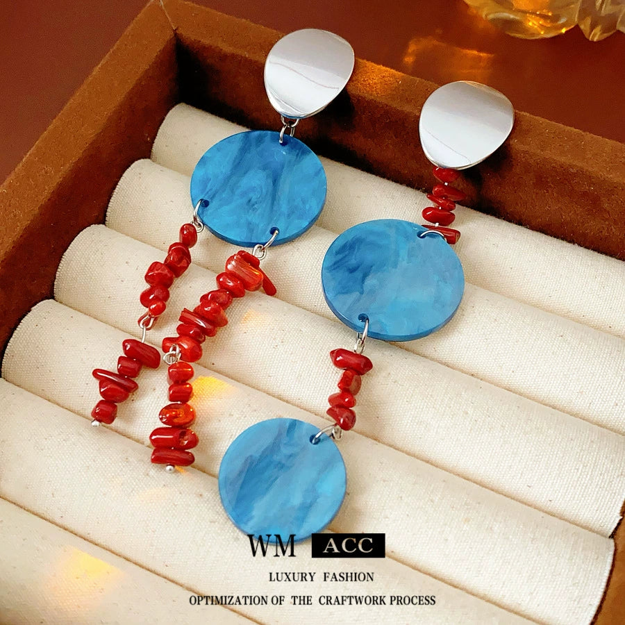 Earrings Plastic Resin Geometric Electroplating Oval Sequin Asymmetric Tassel Retro Ethnic Style Women's