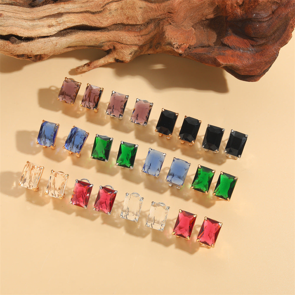 [Product Name] European and American new style, stylish, square crystal zircon earrings, niche, fashionable, personalized, exquisite earrings, wholesale