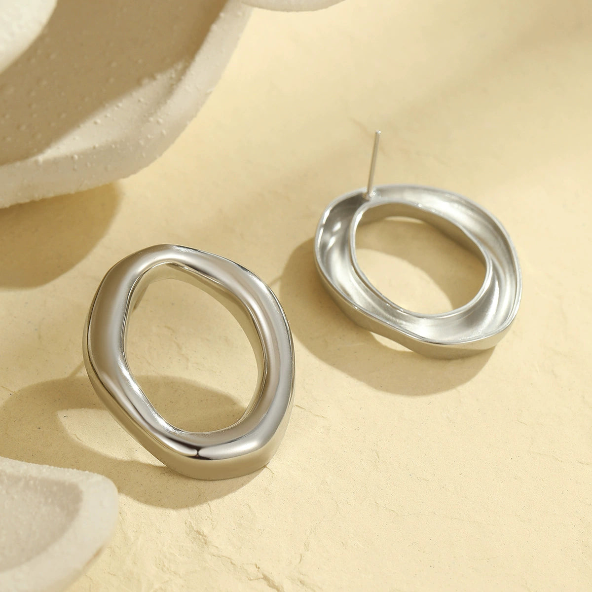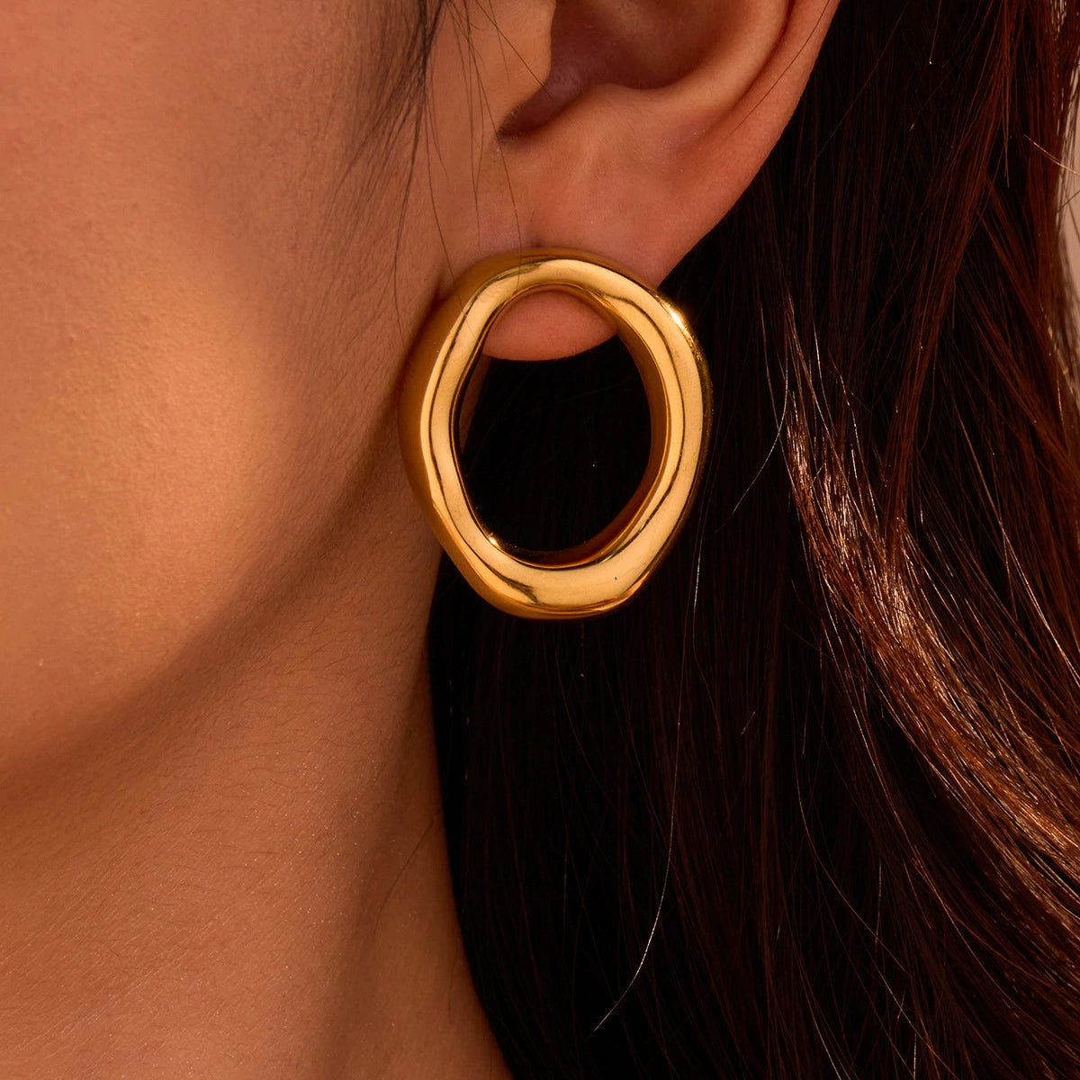 Exaggerated Hollow Irregular Circle Stainless Steel 18K Electroplated Women's Earrings