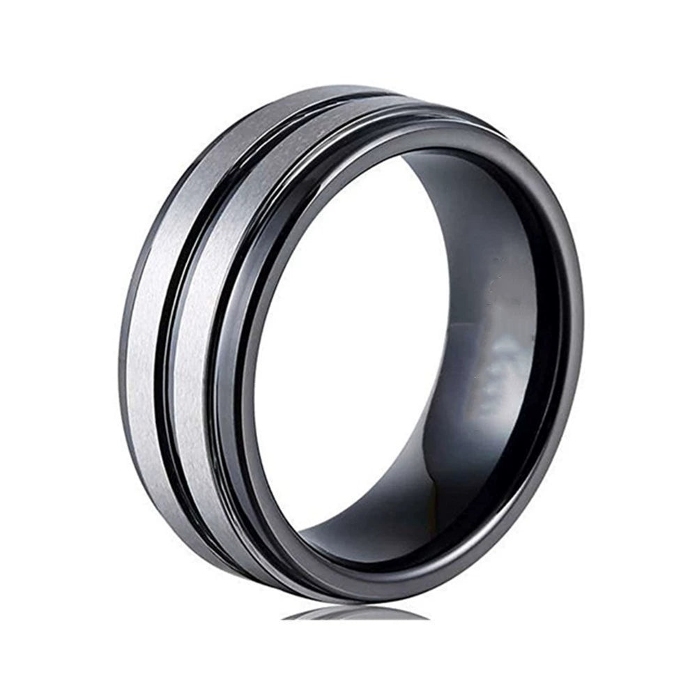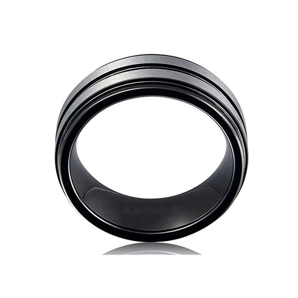 Fashion Creative Black White Surface Groove Ring Stainless Steel Jewelry