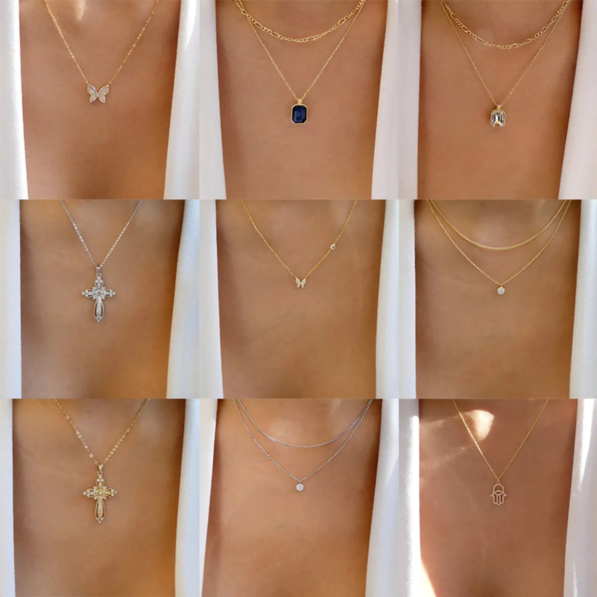 Fashion Cross Butterfly Alloy Rhinestones Women'S Pendant Necklace 1 Piece